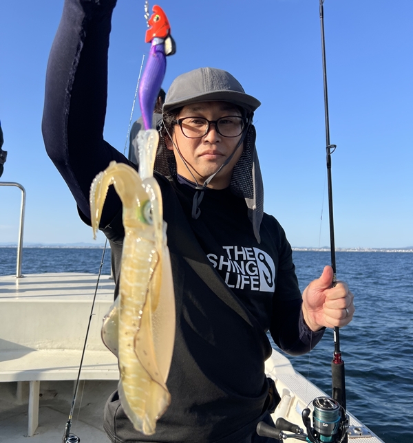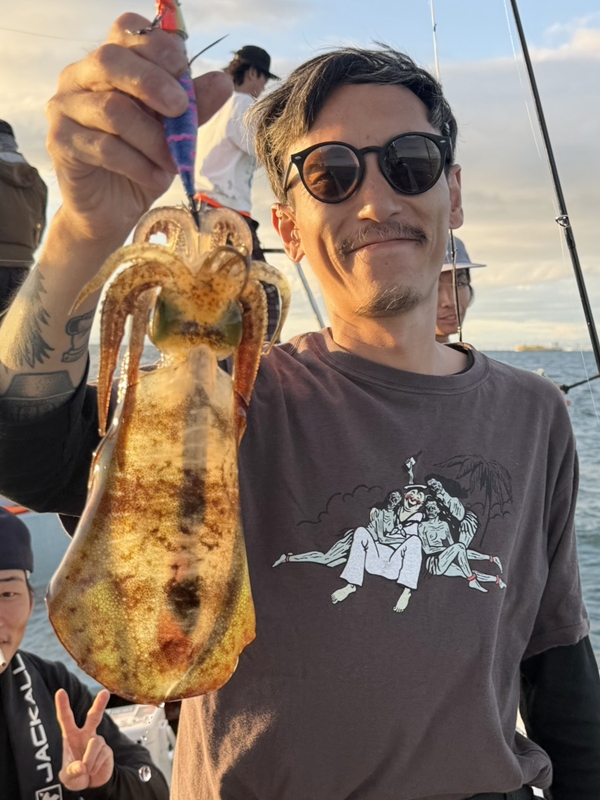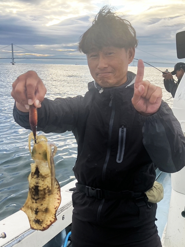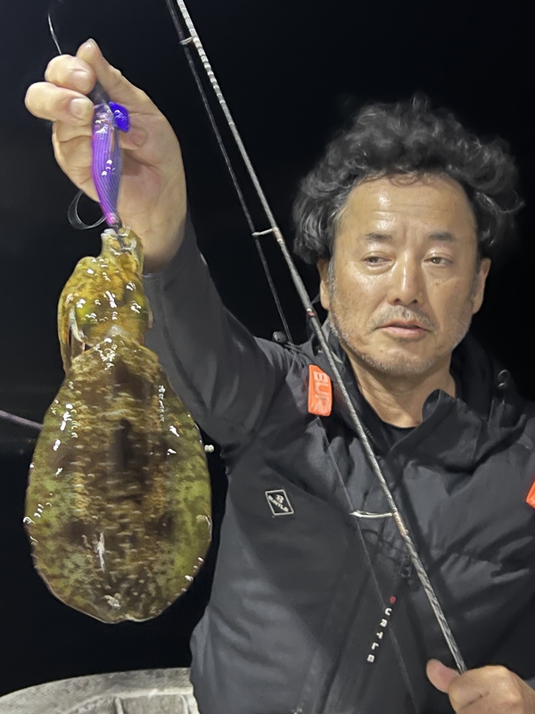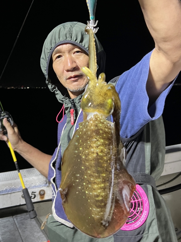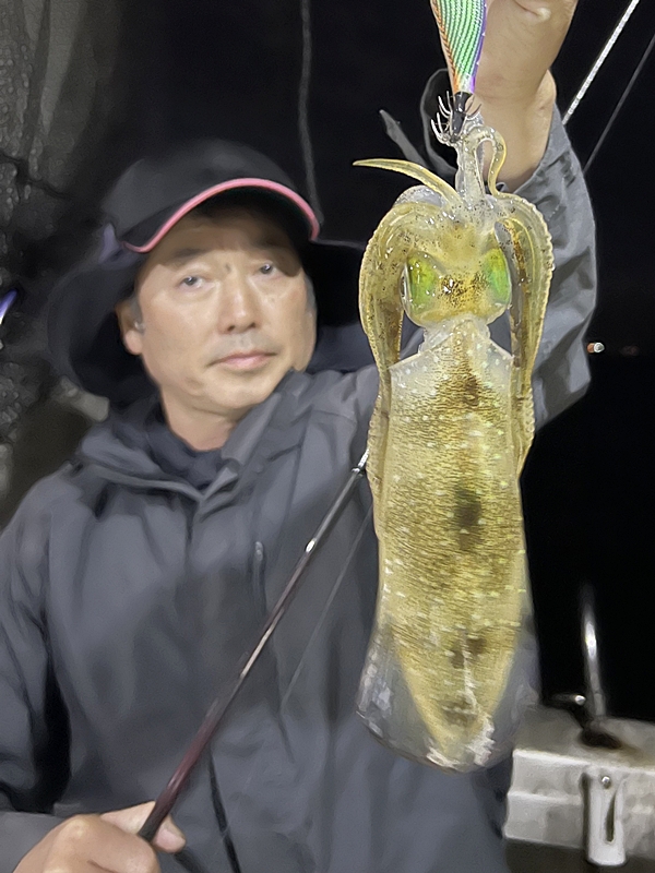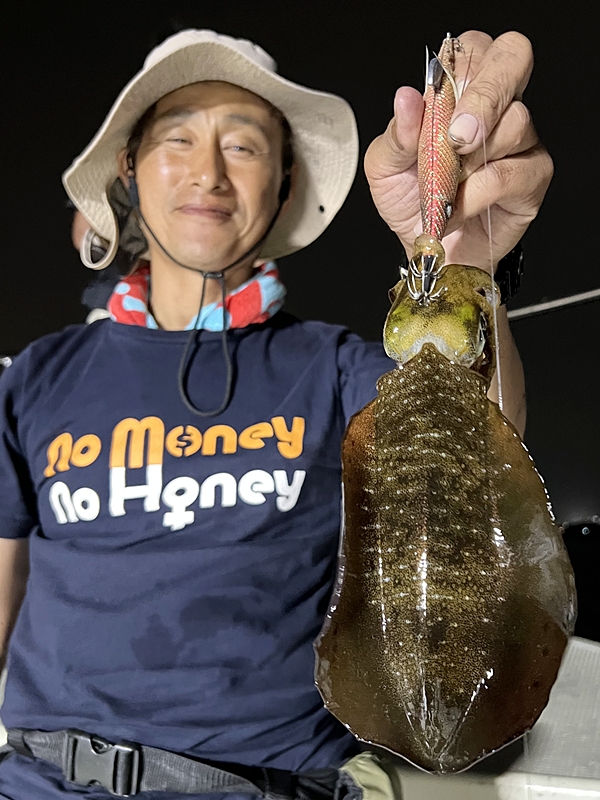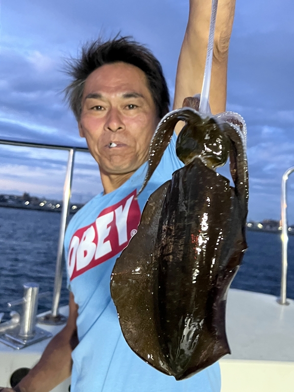 半夜便 晴れ アオリイカ便 (明石沖) アオリイカ12~19cmを43杯。 (0~11杯) ケンサキイカ14~15cmを2杯。 (0~1杯) コウイカ少々。 トップは薮井さんで11杯でした。