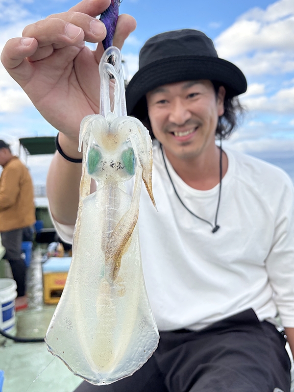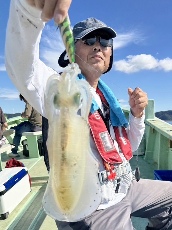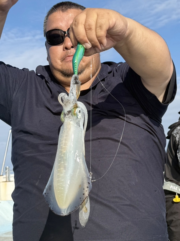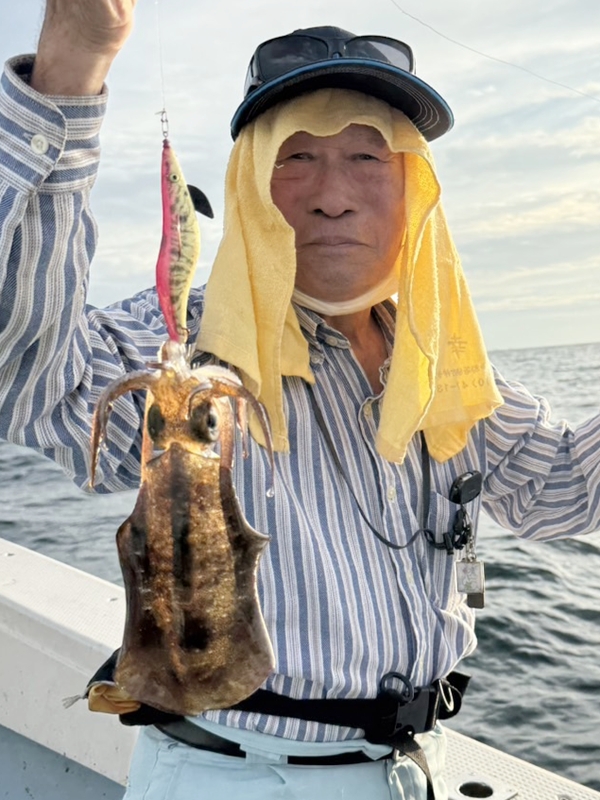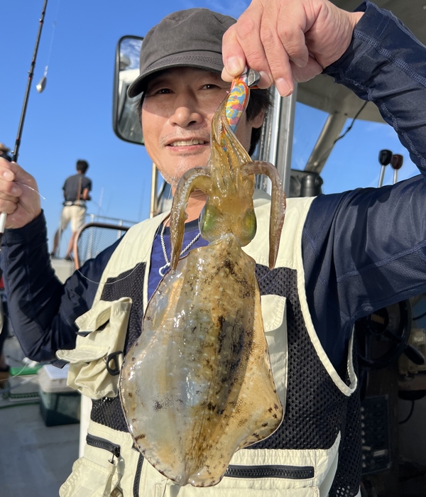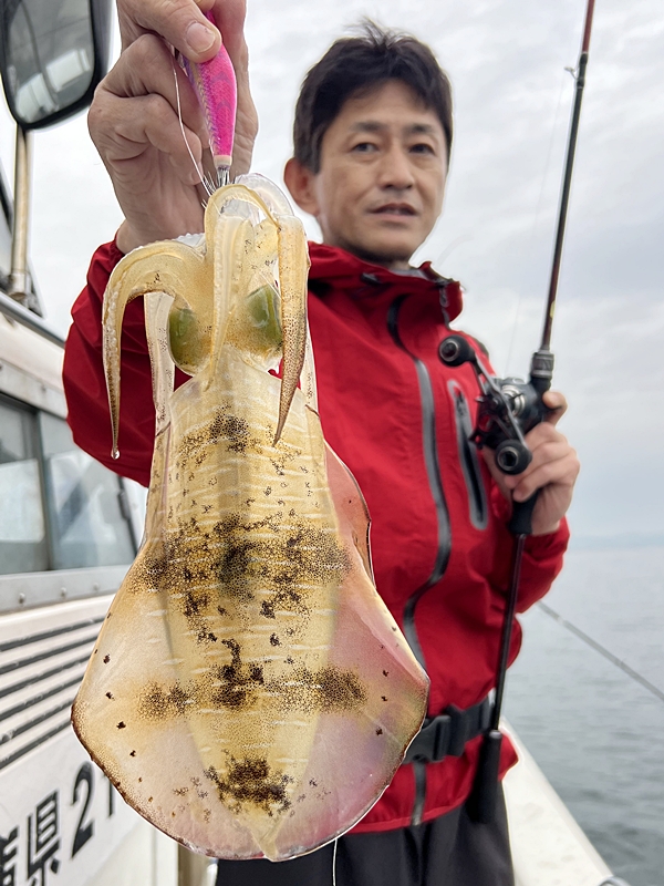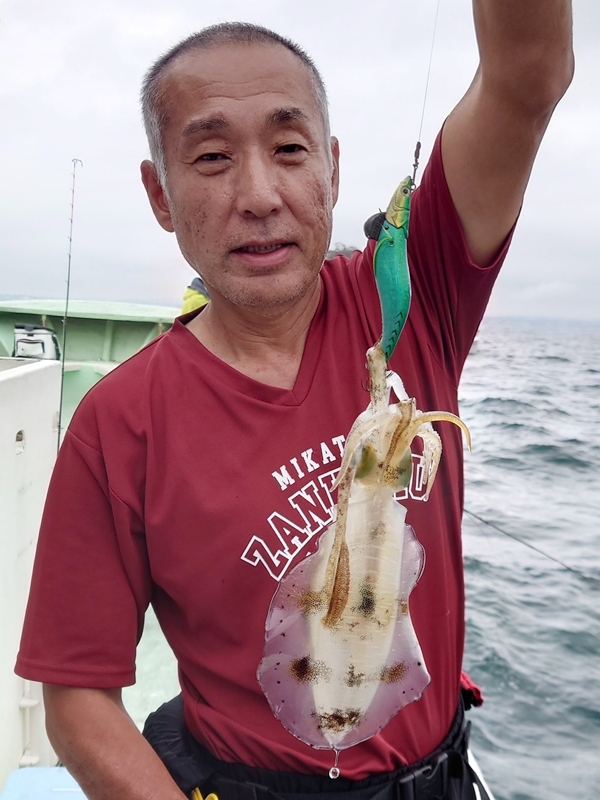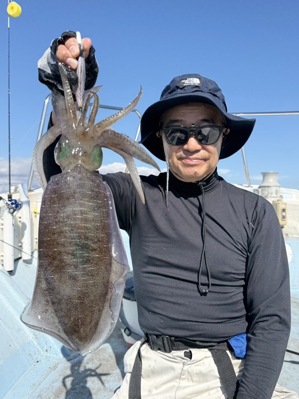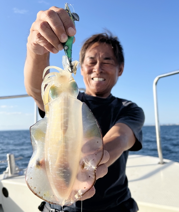 朝便 晴れ アオリイカ便 (淡路沖) アオリイカ20~25cmを17杯。 (0~3杯) コウイカ12~16cmを12杯。 (0~3杯) トップは横野さんでアオリ3杯、コウイカ3杯でした。 鯛カブラ便 (淡路沖) マダイ25~45cmを6匹。 (0~2匹) メジロ65cmを1匹。 トップは下江さんで2匹でした。 |