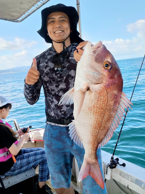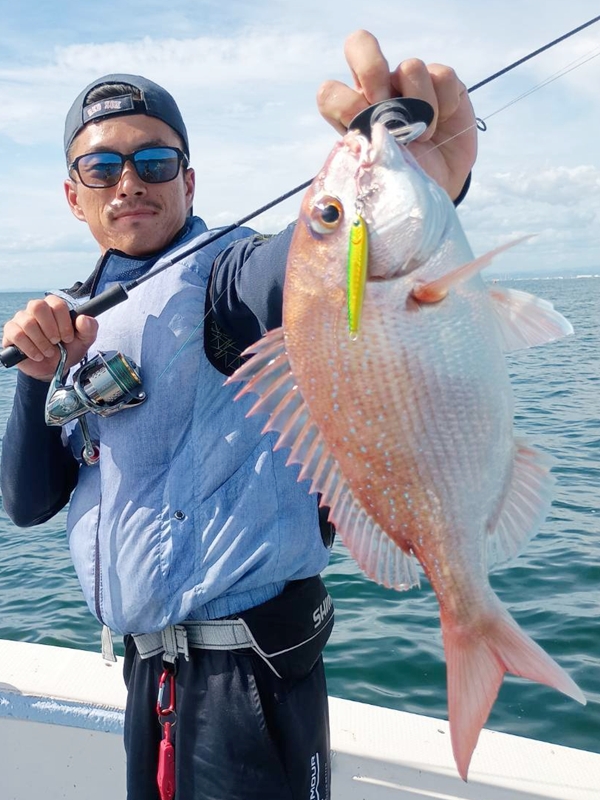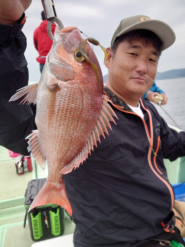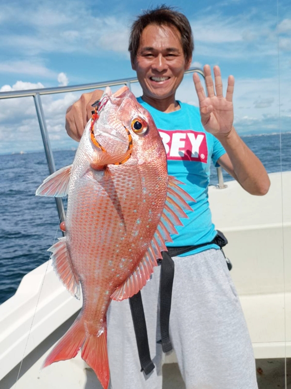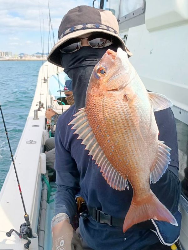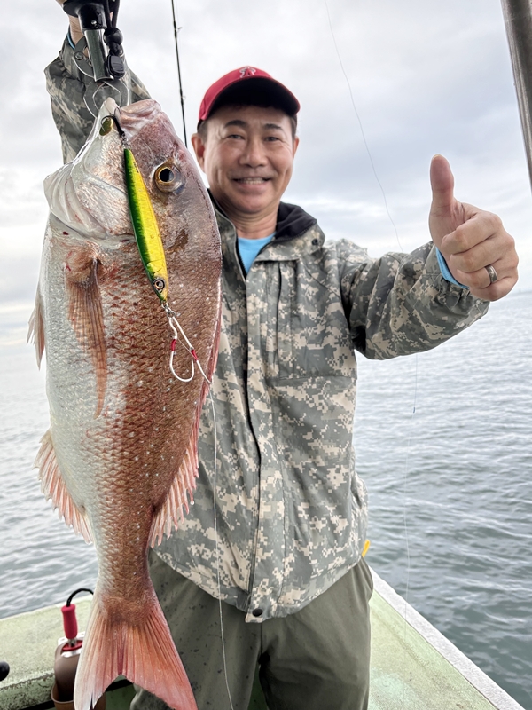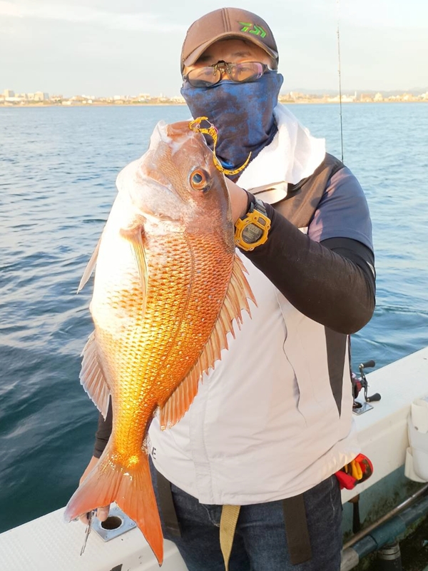 昼便 晴れ 鯛カブラ便 (淡路沖) マダイ28~55cmを38匹。 (0~5匹) アコウ32cmを1匹。 マゴチ40~45cmを3匹。 (0~1匹) ワニゴチ32~40cmを8匹。 (0~2匹) ホウボウ32cmを1匹。 マアジ42cmを1匹。 サゴシ50cmを1匹。 ハマチ少々。 トップは陣崎さんで5匹でした。