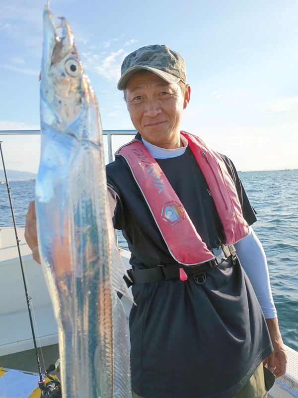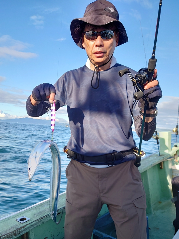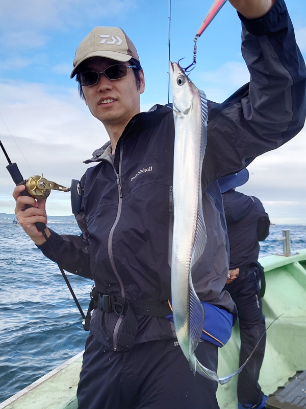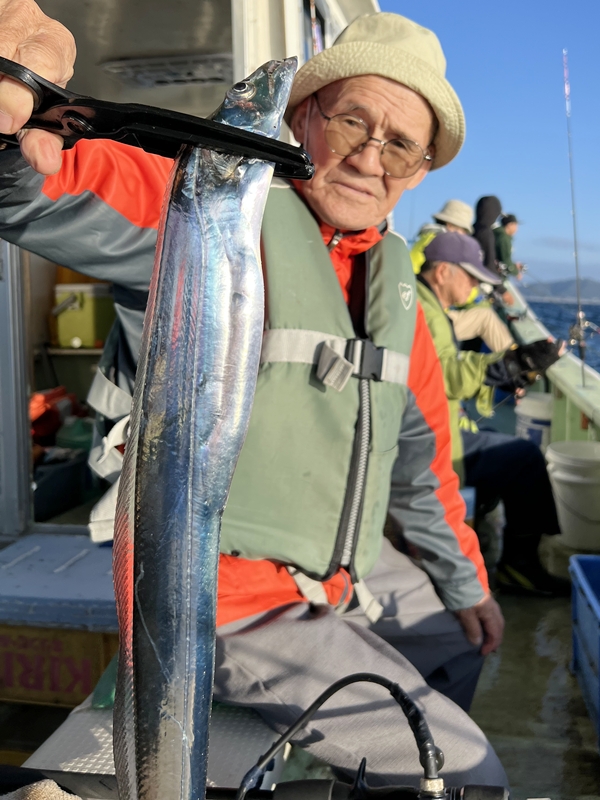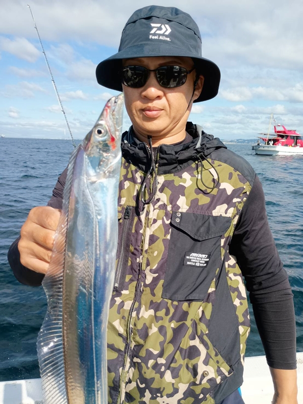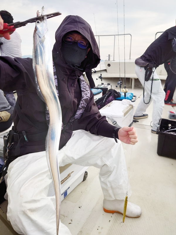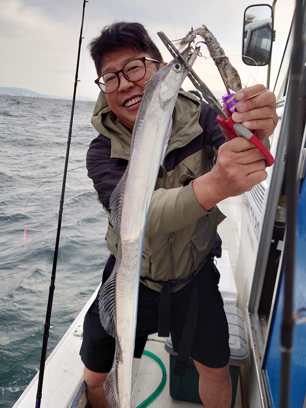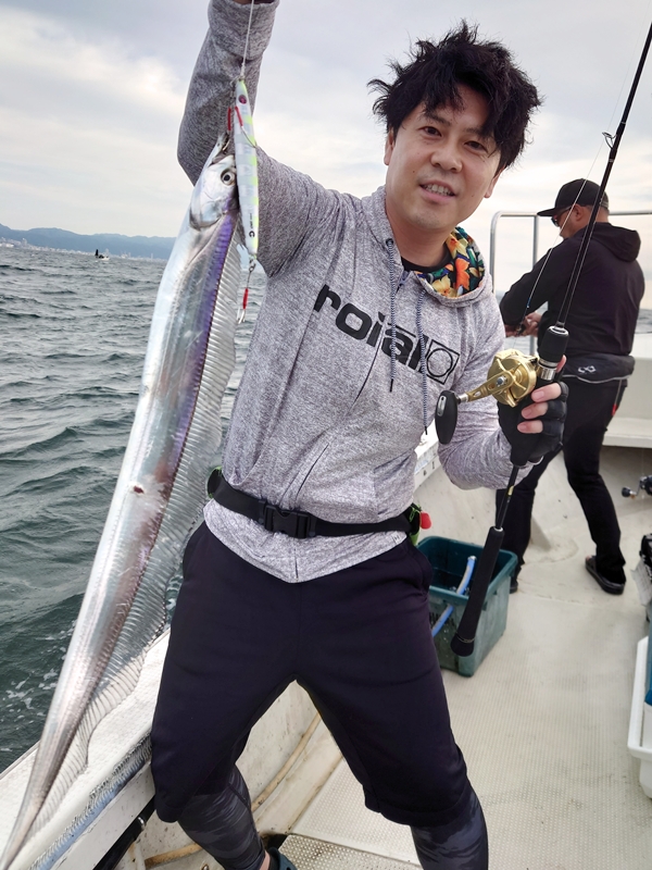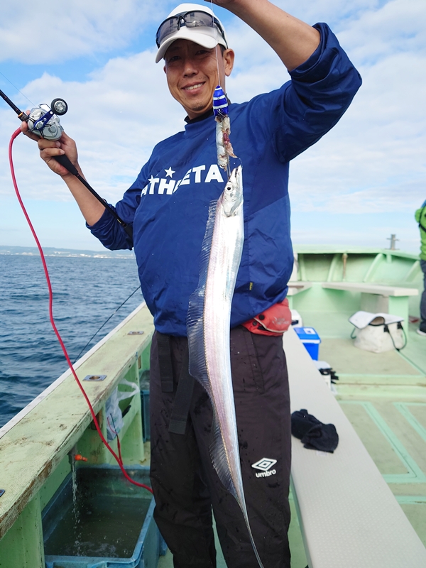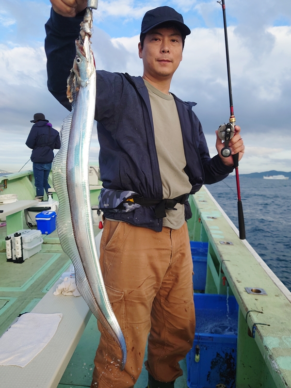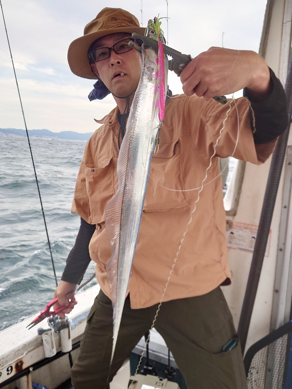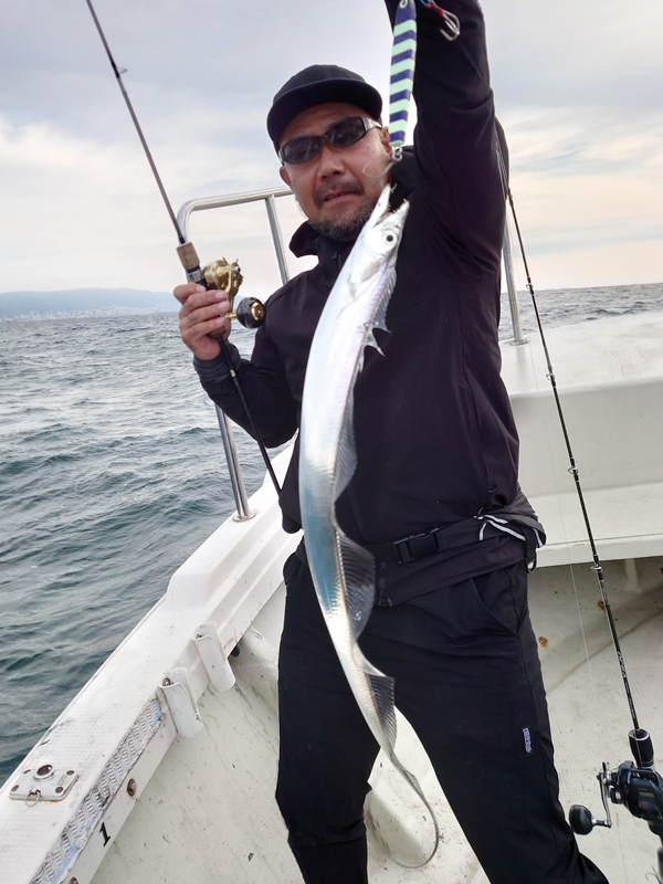 朝便 晴れ タチウオ便 (神戸沖) タチウオ70~110cmを90匹。 (2~10匹) サワラ80cmを1匹。 トップは山下さん、吉岡さん、宮本さんで11匹でした。