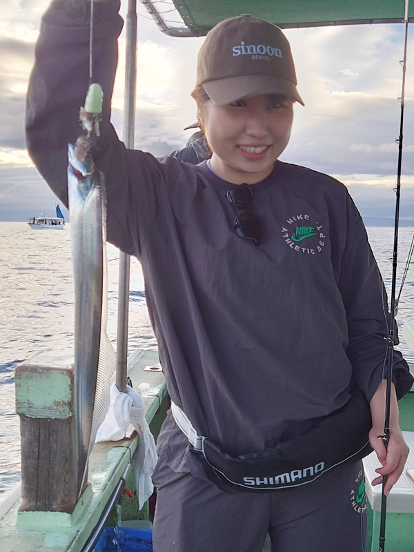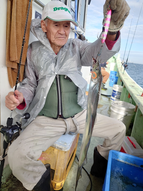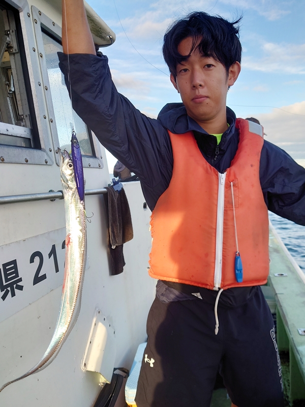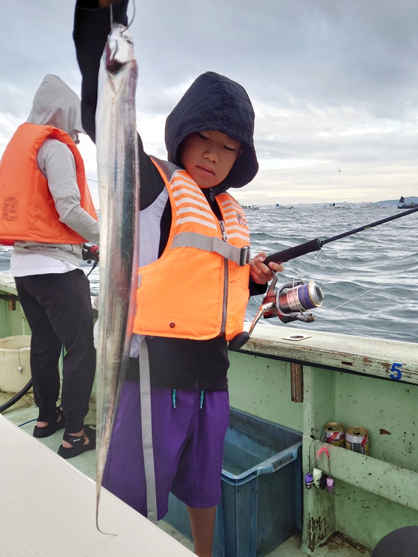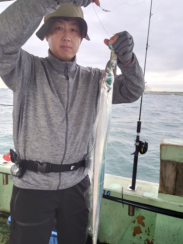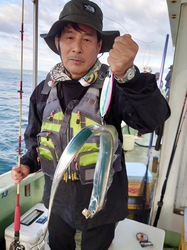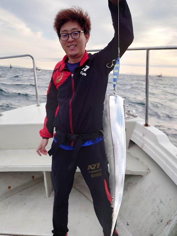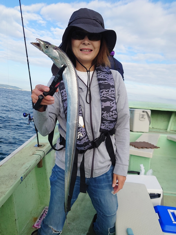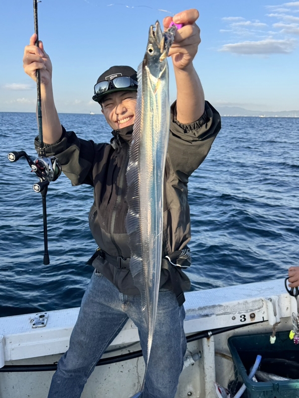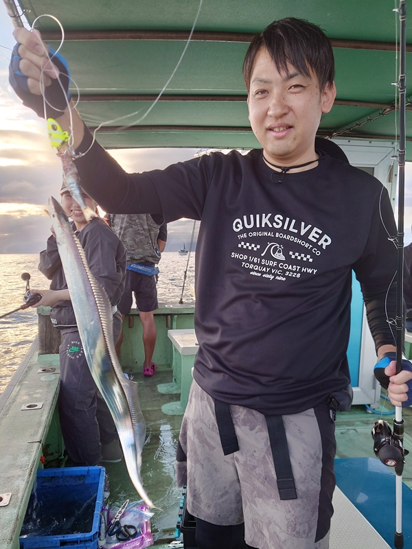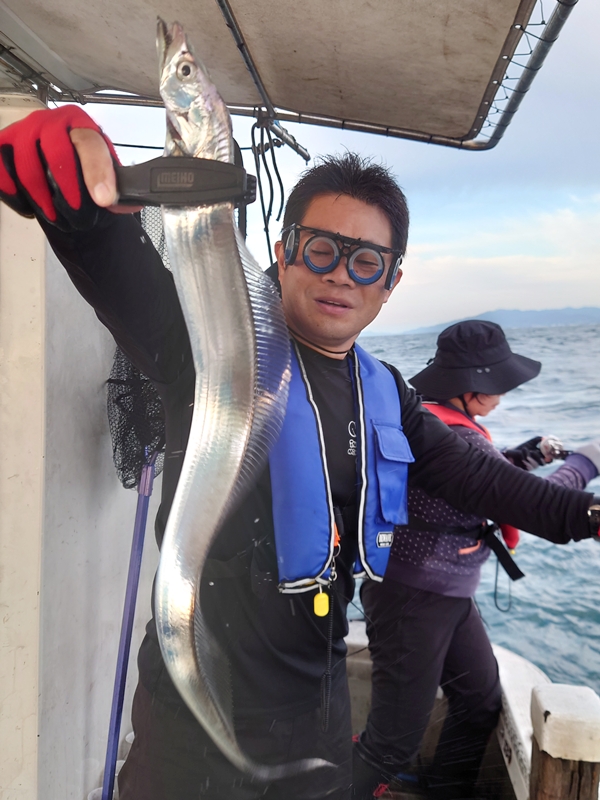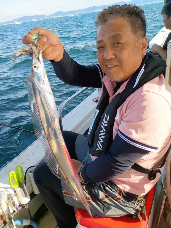 朝便 晴れ タチウオ便 (神戸沖) タチウオ70~110cmを90匹。 (2~10匹) サワラ80cmを1匹。 トップは山下さん、吉岡さん、宮本さんで11匹でした。