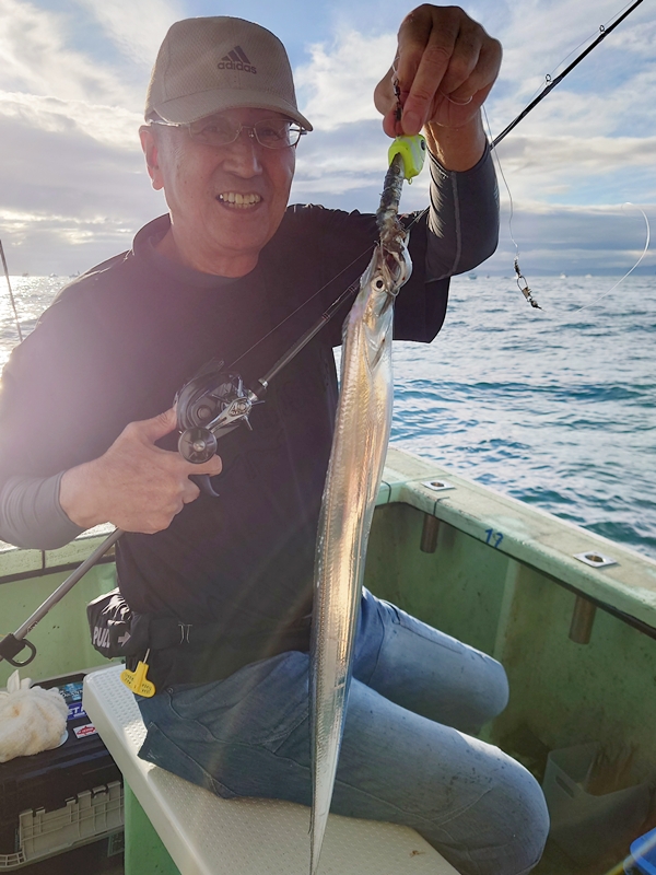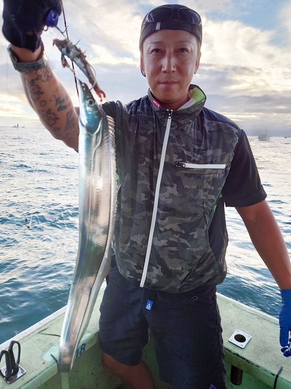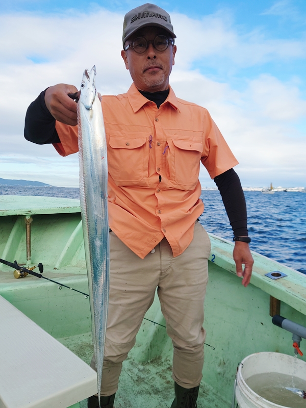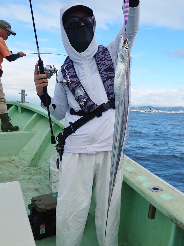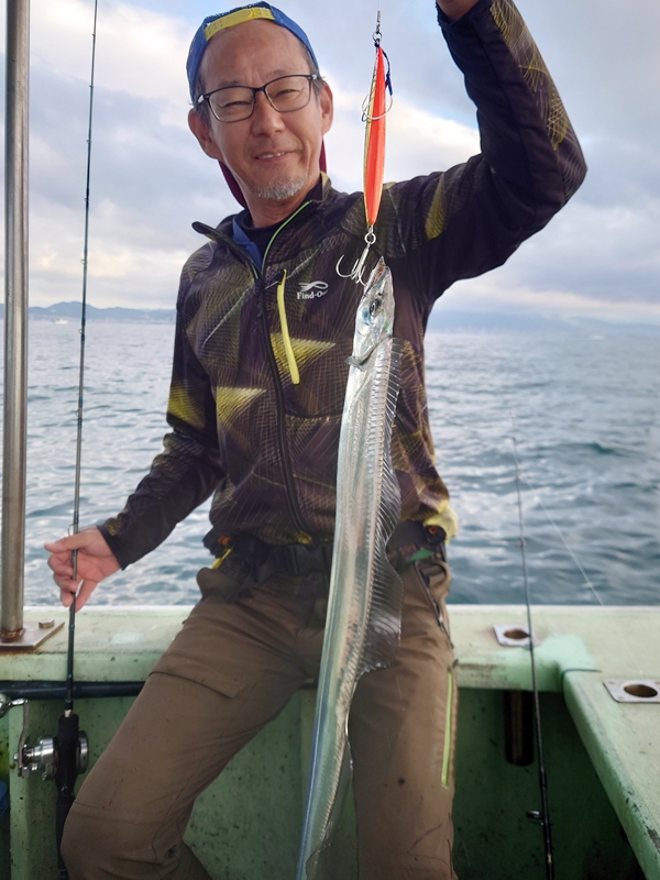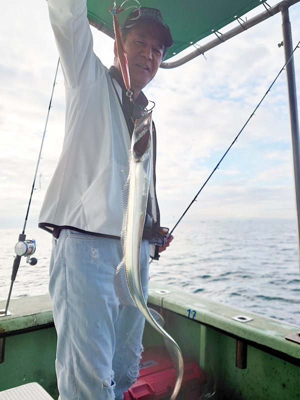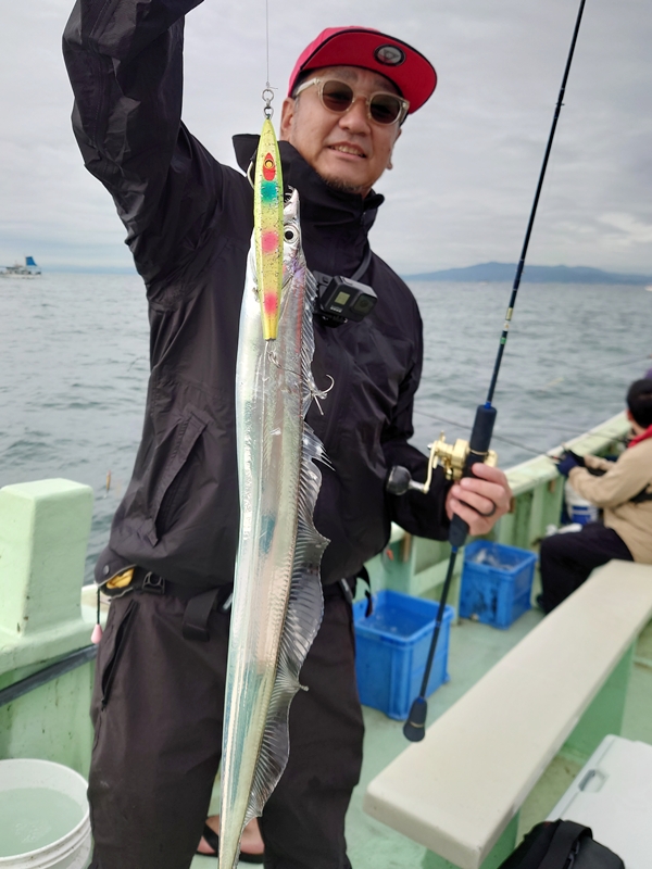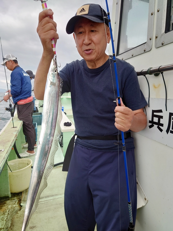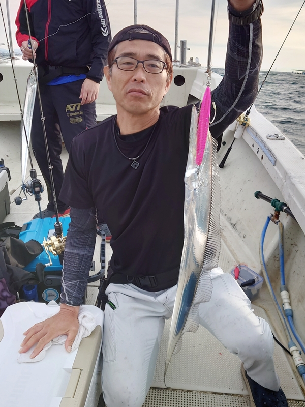 朝便 晴れ タチウオ便 (神戸沖) タチウオ60~105cmを162匹。 (3~20匹) サワラ70cmを1匹。 トップは長山さん、増田さんグループの方で20匹でした。