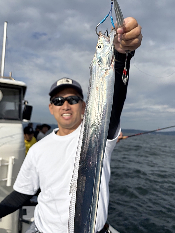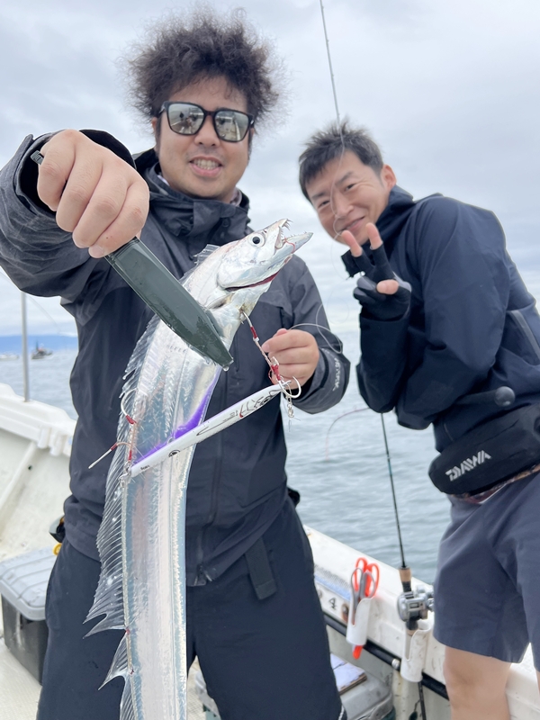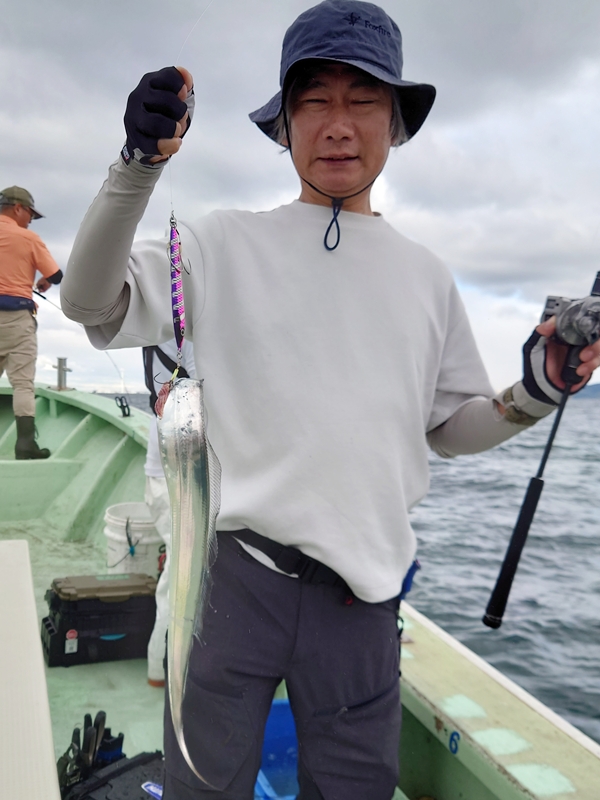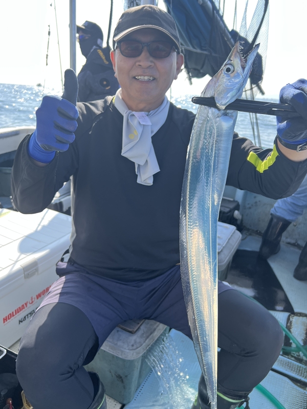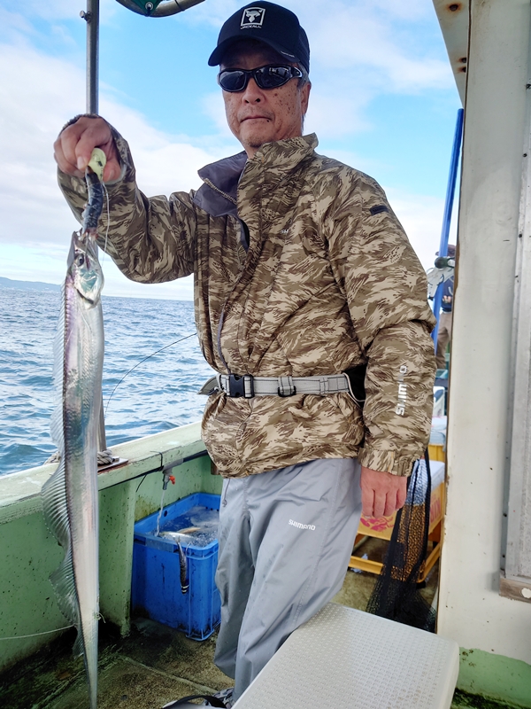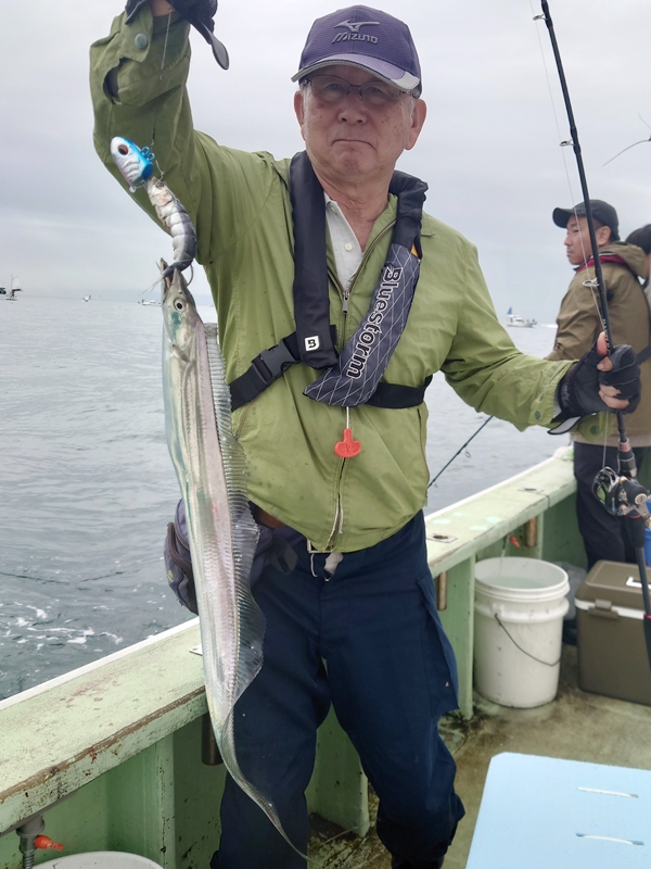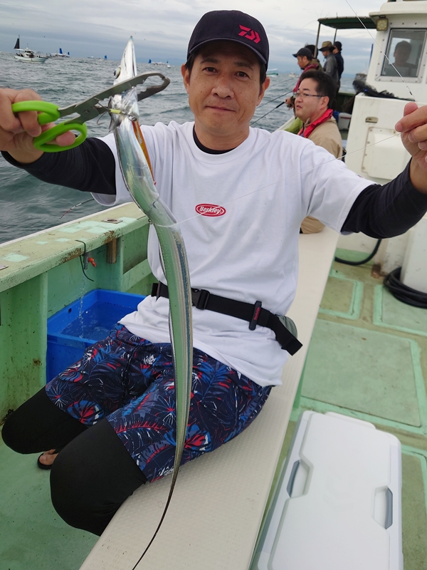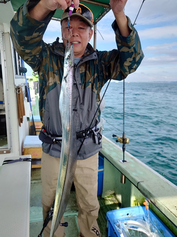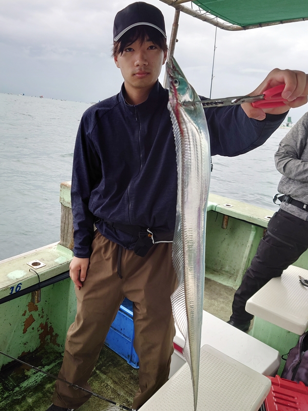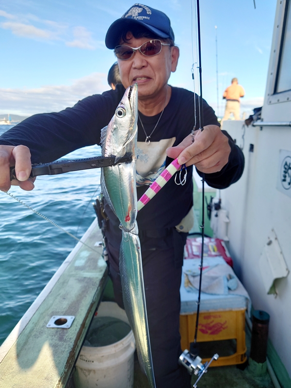 朝便 晴れ タチウオ便 (神戸沖) タチウオ60~105cmを162匹。 (3~20匹) サワラ70cmを1匹。 トップは長山さん、増田さんグループの方で20匹でした。
