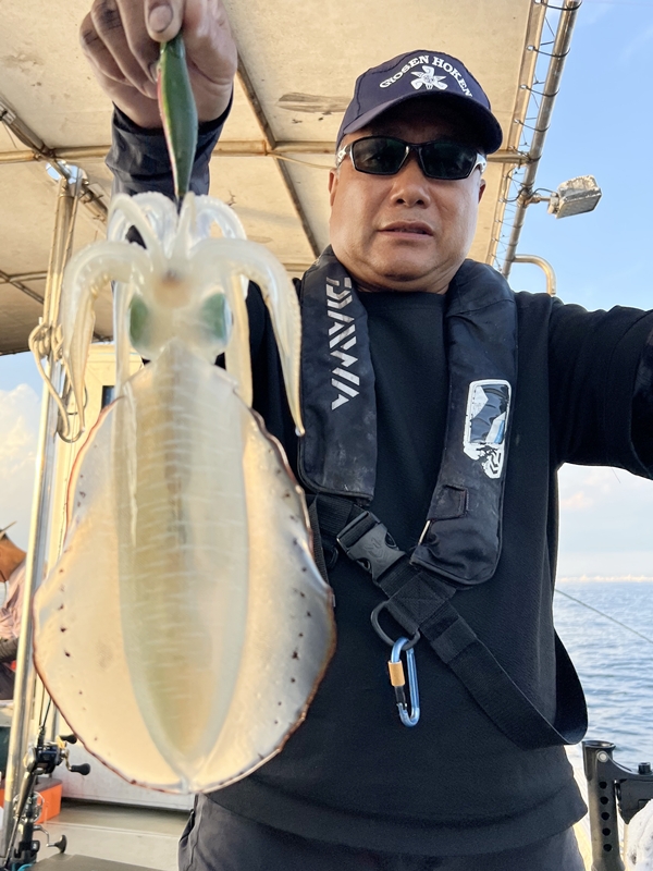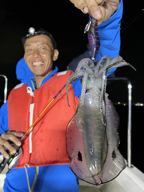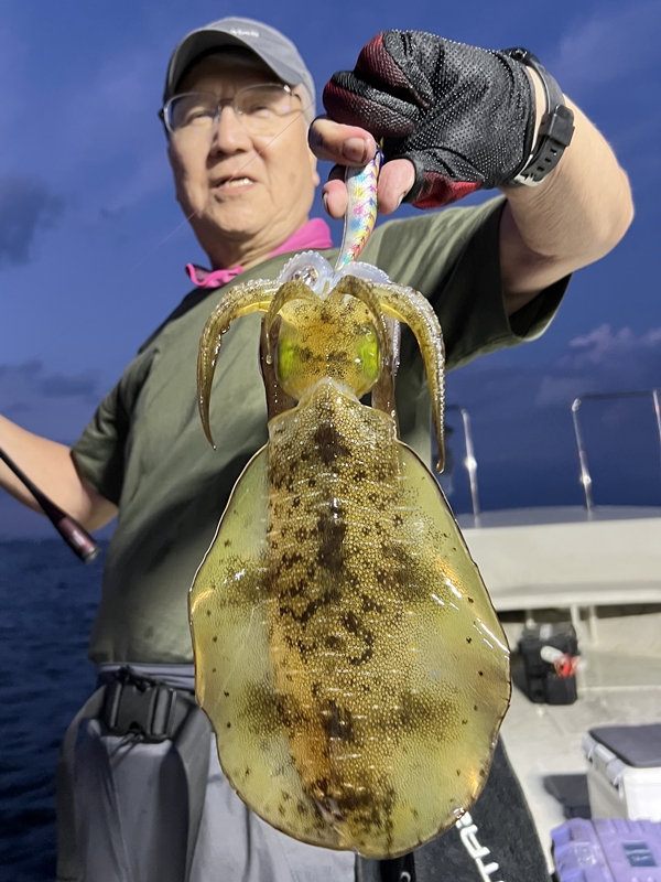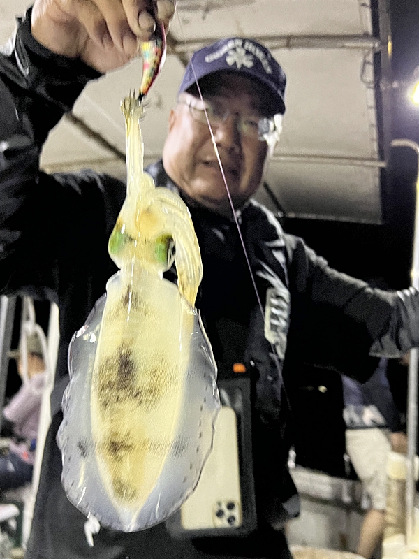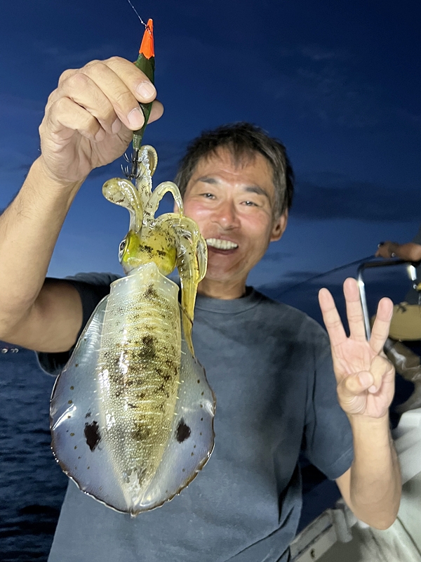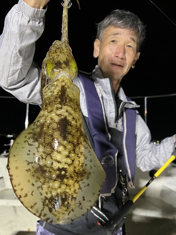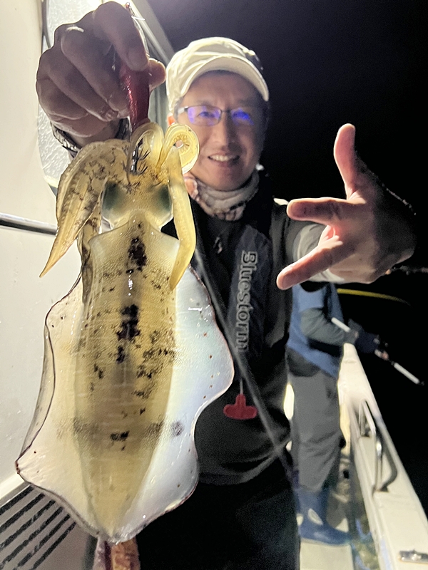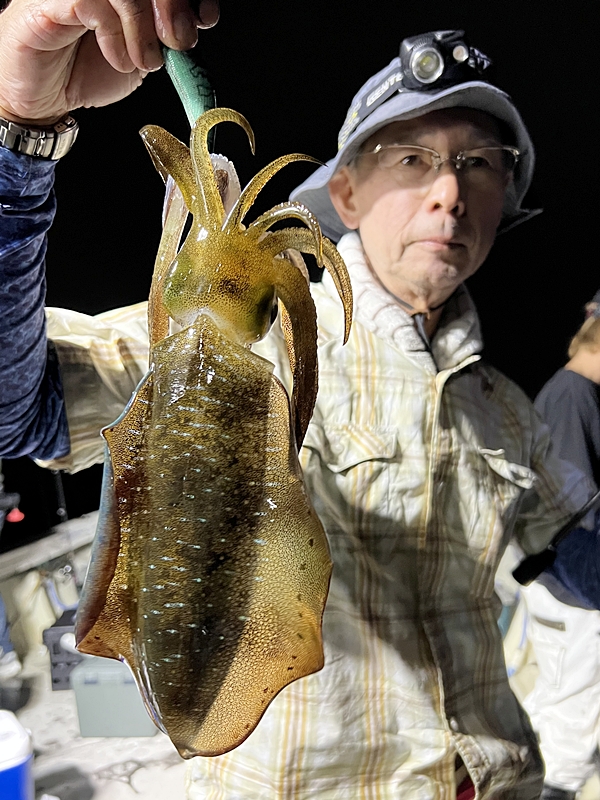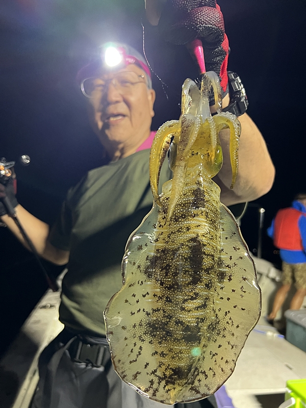 半夜便 晴れ アオリイカ便 (明石沖) アオリイカ13~21cmを46杯。 (2~7杯) コウイカ13cmを1杯。 トップは林さん、橋口さんグループの方で7杯でした。