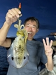 昼便 晴れ アオリイカ便 (淡路沖) アオリイカ20~26.5cmを16杯。 (0~5杯) コウイカ12~18cmを7杯。 (0~1杯) トップは薮井さんで5杯でした。 カワハギ便 (船中5名、淡路沖) カワハギ18~25cmを50匹。 (5~14匹) トップは村原さんで14匹でした。 |
