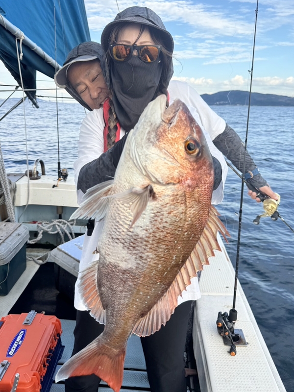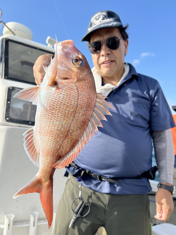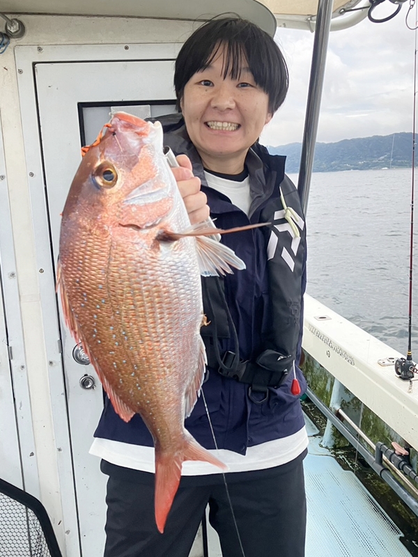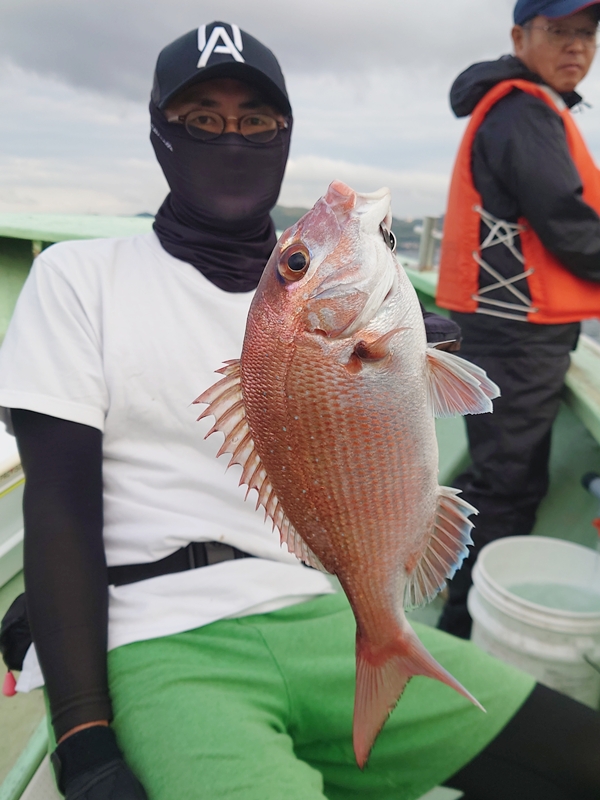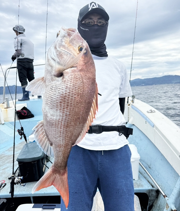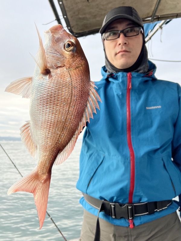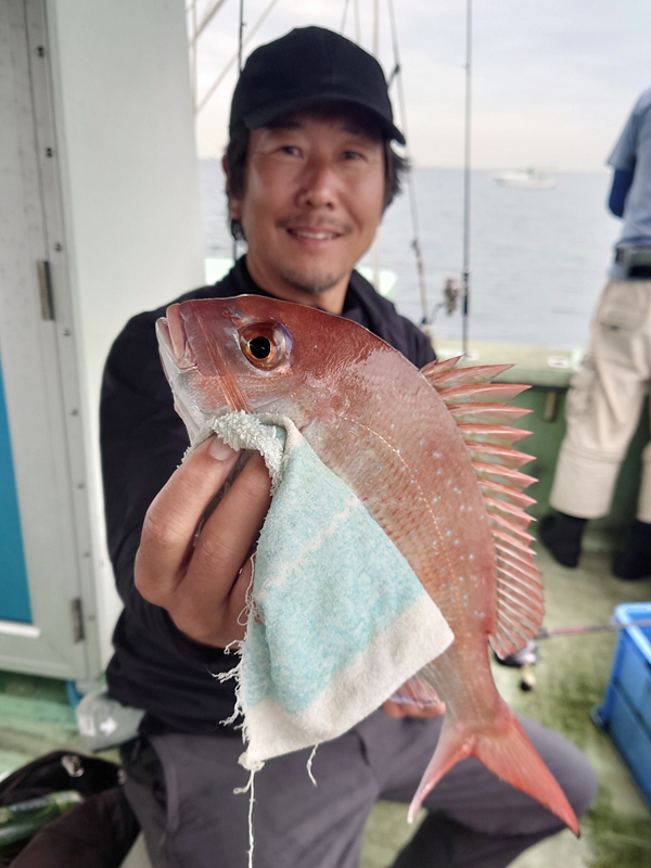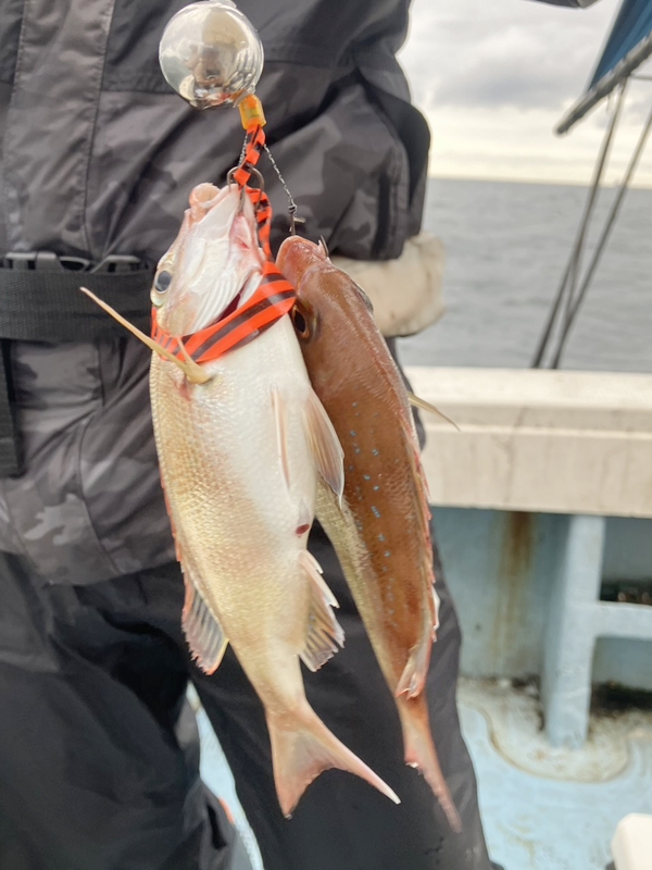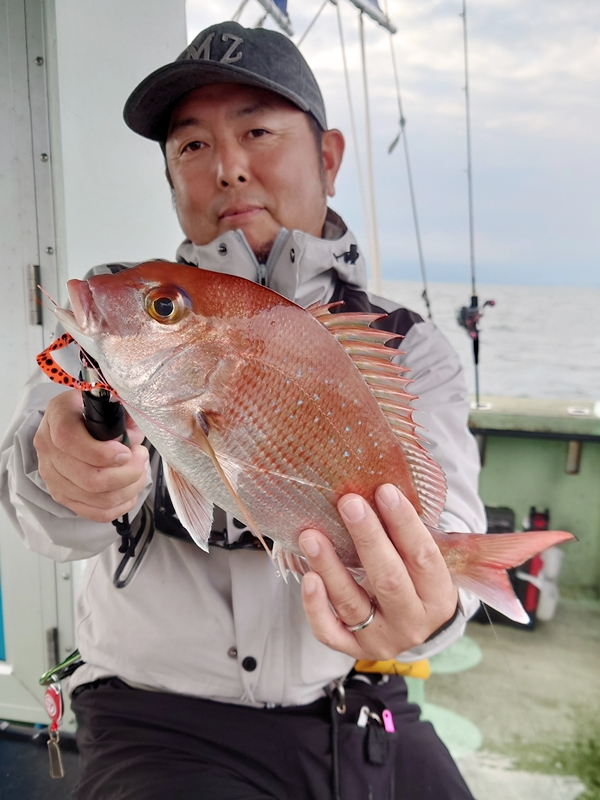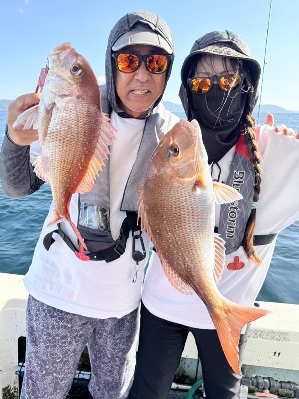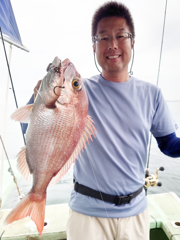鯛カブラ便 (船中2名、淡路沖) マダイ25~40cmを2匹。 (0~1匹) ワニゴチ40cmを1匹。