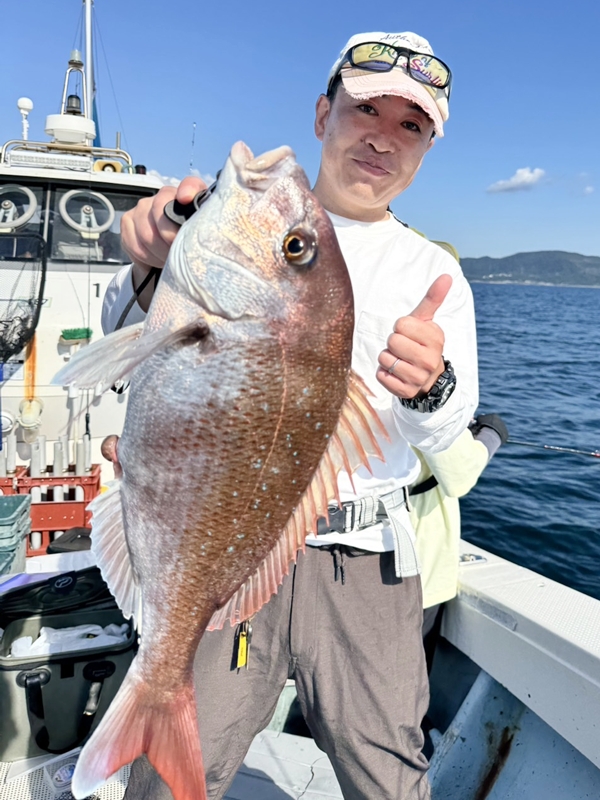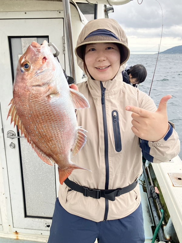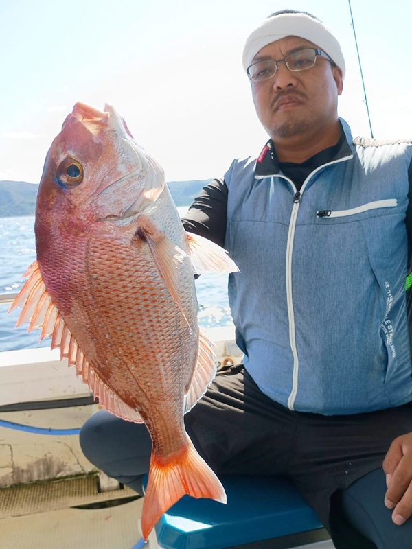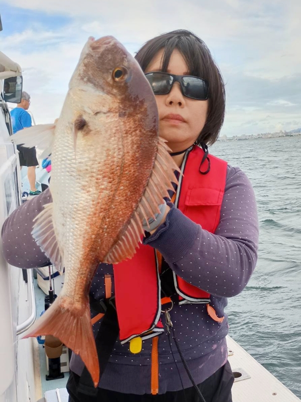 昼便 晴れ 鯛カブラ便 (淡路沖) マダイ25~55cmを13匹。 (0~3匹) マアジ34~35cmを2匹。 (0~1匹) ガシラ少々。 トップは梅津さん、安岡さんで3匹でした。