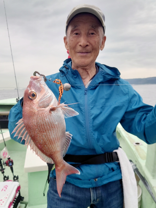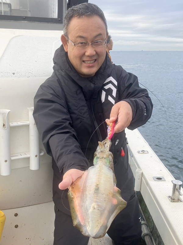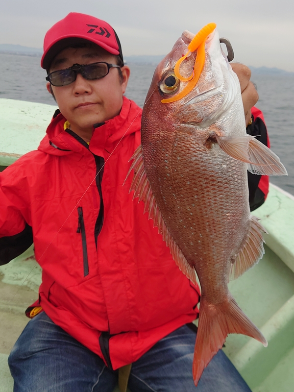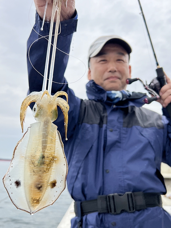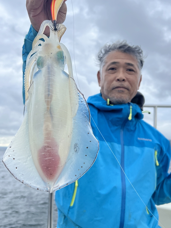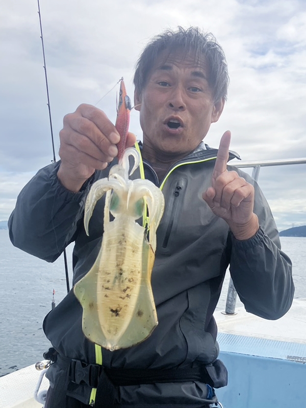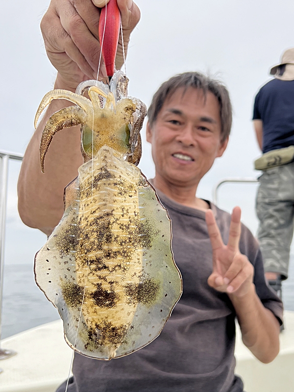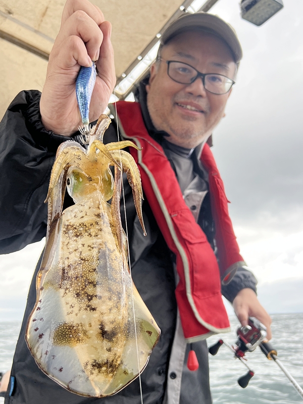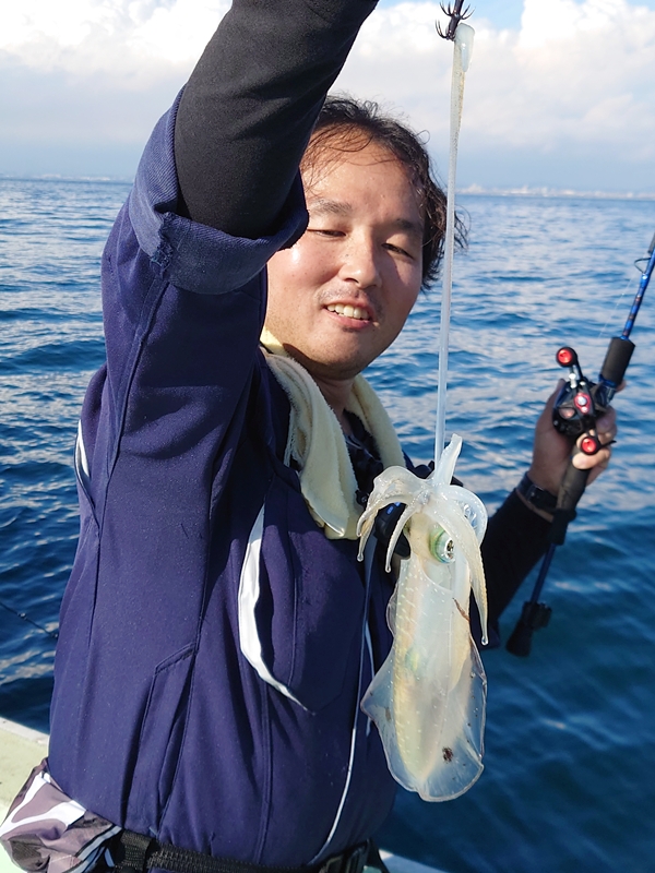 昼便 小雨 アオリイカ便 (淡路沖) アオリイカ17~23cmを15杯。 (0~7杯) コウイカ12~18cmを11杯。 (0~2杯) トップは薮井さんで7杯でした。 鯛カブラ便 (淡路沖) マダイ30~45cmを21匹。 (0~7匹) ワニゴチ25~50cmを3匹。 (0~1匹) トップは三宅さんで7匹でした。 |