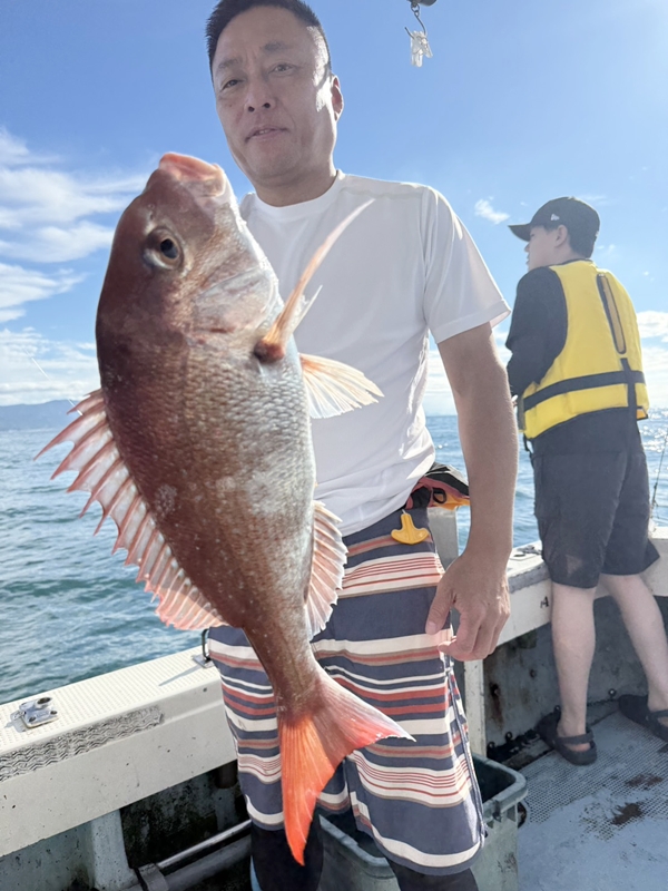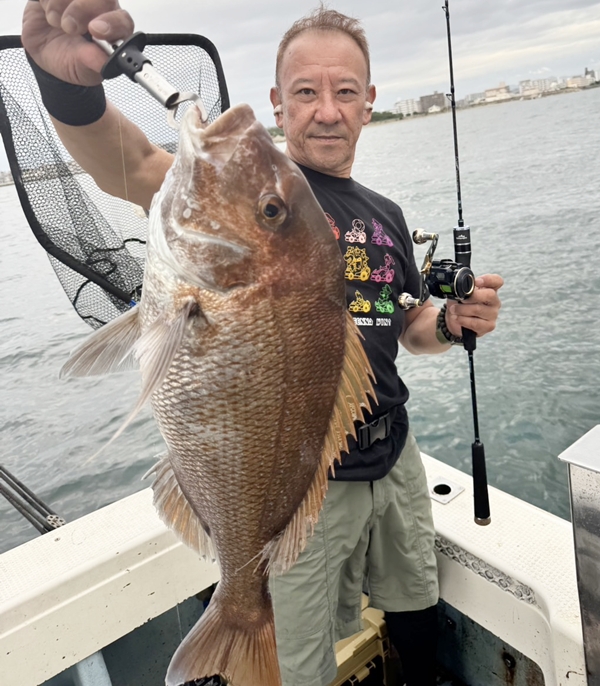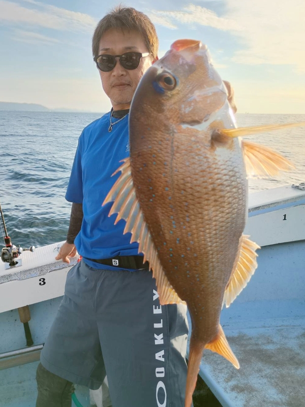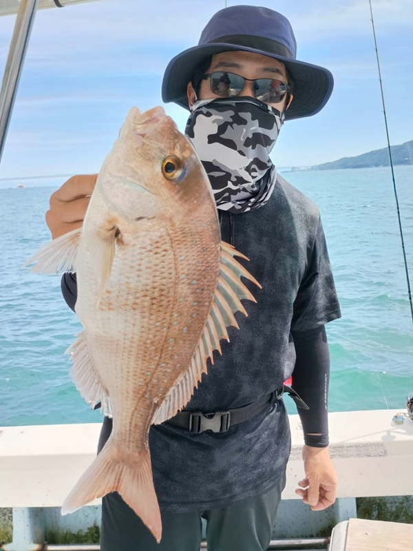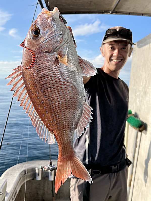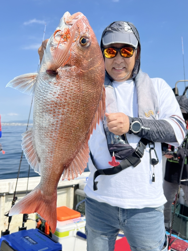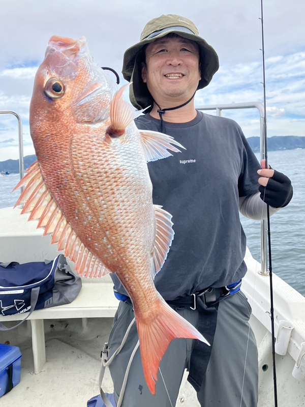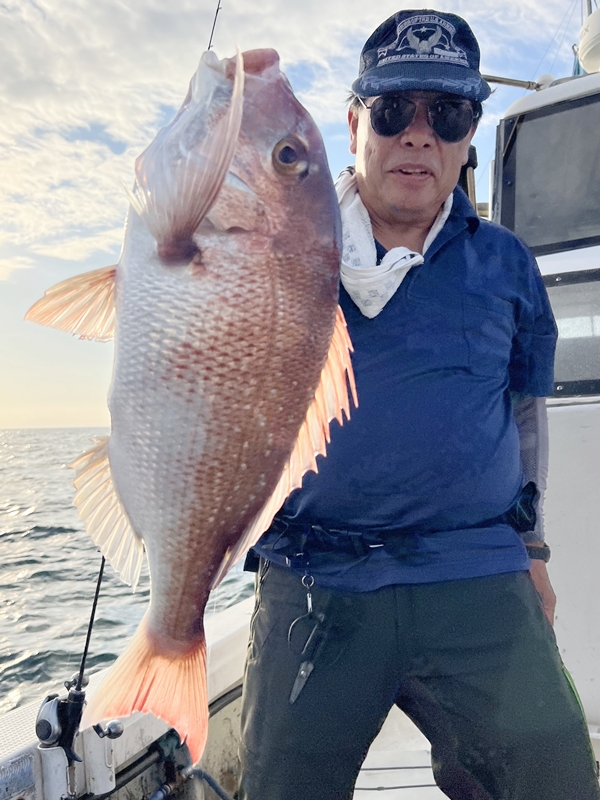 朝便 晴れ 鯛カブラ便 (淡路沖) マダイ30~57cmを10匹。 (0~4匹) チヌ41~45cmを3匹。 (0~1匹) トップは杉本さんで4匹でした。
