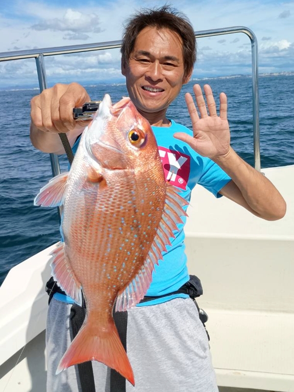 昼便 晴れ 鯛カブラ便 (船中5名、淡路沖) マダイ35~62cmを10匹。 (1~5匹) マゴチ48~50cmを2匹。 (0~1匹) ハマチ40~45cmを2匹。 (0~1匹) トップは植松さんグループの方で5匹でした。