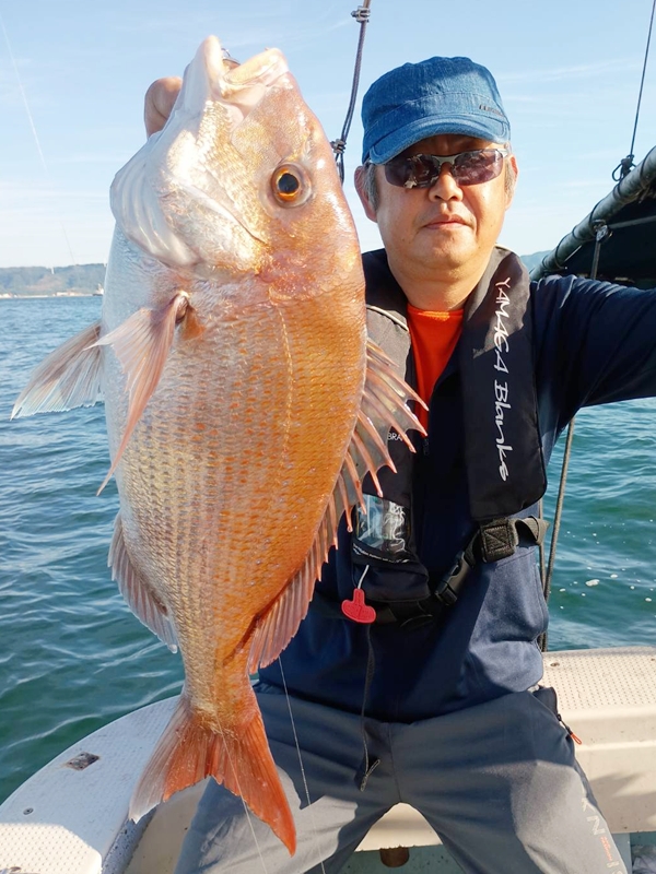 朝便 晴れ 鯛カブラ便 (船中5名、淡路沖) マダイ27~38cmを7匹。 (0~2匹) ワニゴチ35~37cmを2匹。 (0~1匹) ハマチ45cmを1匹。 タチウオ65cmを1匹。