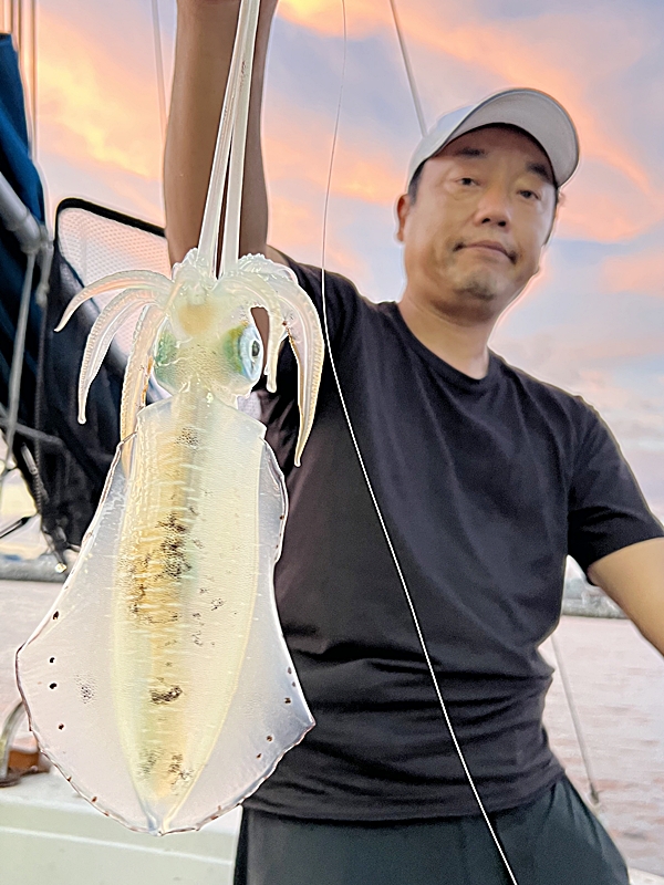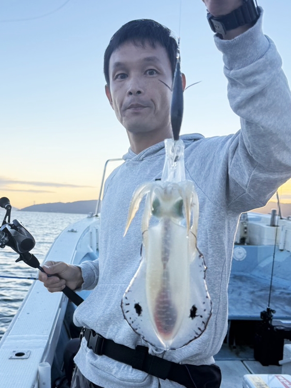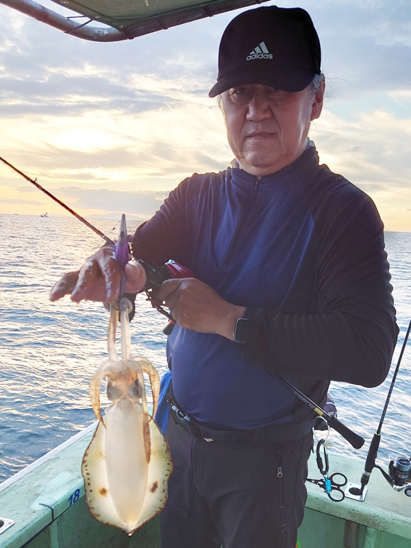 半夜便 晴れ アオリイカ便 (明石沖) アオリイカ12~18cmを14杯。 (0~4杯) トップは神山さんで6杯でした。