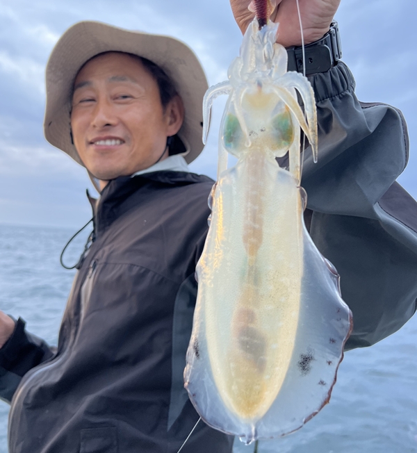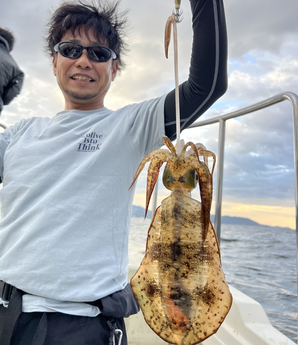アオリイカ便 (淡路沖) アオリイカ17~23cmを30杯。 (0~7杯) コウイカ13~17cmを11杯。 (0~3杯) ケンサキイカ18cmを1杯。 トップは箱崎さんグループの方で7杯でした。