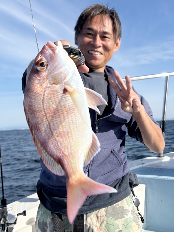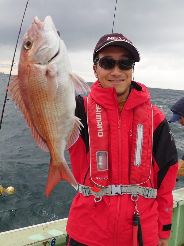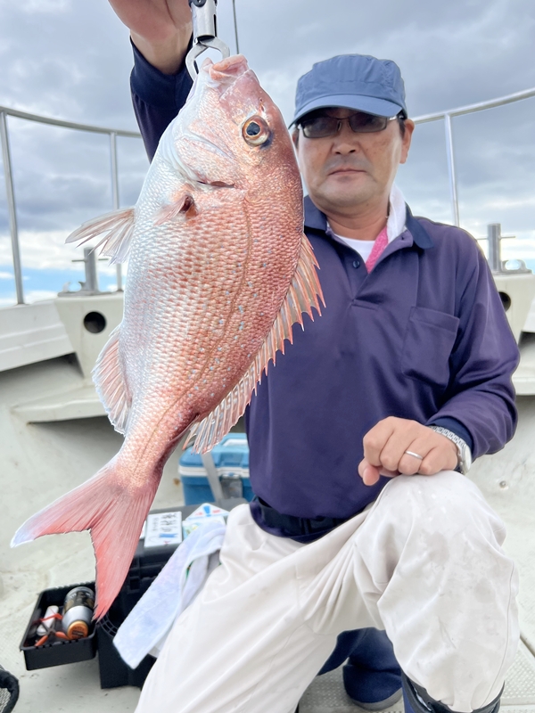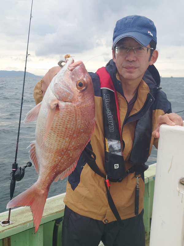 朝便 晴れ 乗合 鯛カブラ便 (淡路沖) マダイ30~57cmを18匹。 (0~5匹) トップは杉本さんで5匹でした。