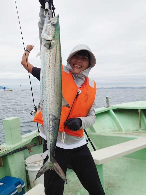 ジギング便 (淡路、神戸沖) ハマチ40~50cm10匹。 (0~2匹) サゴシ50~55cmを7匹。 (0~2匹) タチウオ60~90cmを37匹。 (1~5匹)