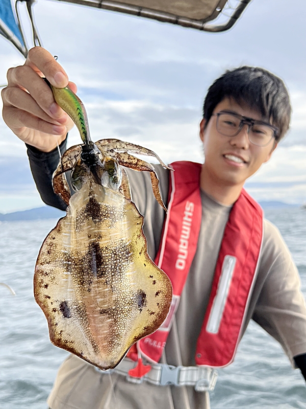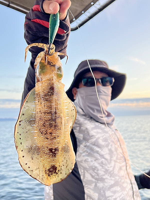 昼便 晴れ アオリイカ便 (淡路沖) アオリイカ17~23cmを31杯。 (0~8杯) コウイカ13~17cmを9杯。 (0~2杯) トップは杉本さんで8杯でした。
