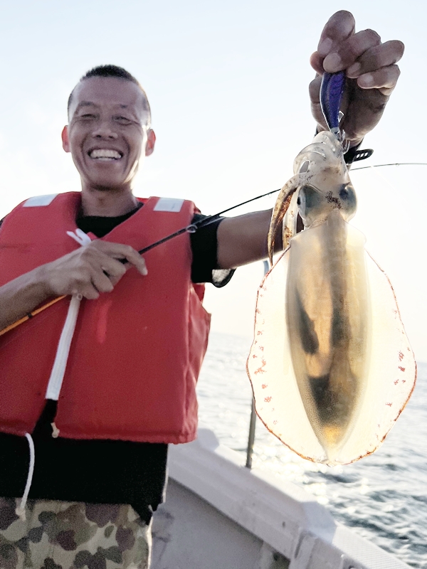 昼便 晴れ アオリイカ便 (淡路沖) アオリイカ17~20cmを23杯。 (0~6杯) コウイカ13~15cmを15杯。 (0~2杯) ケンサキイカ18cmを1杯。 トップは杉本さんで6杯でした。