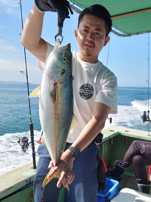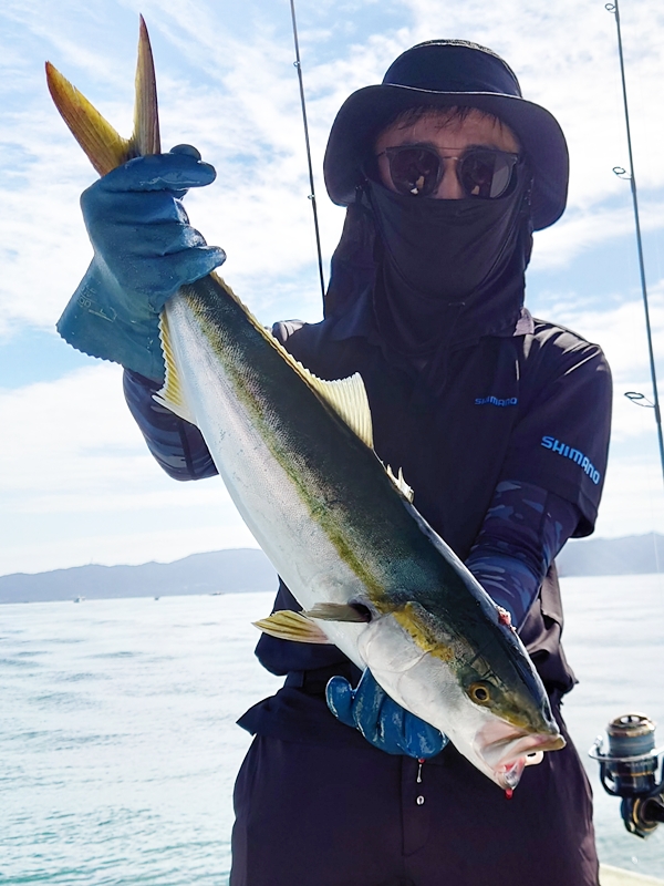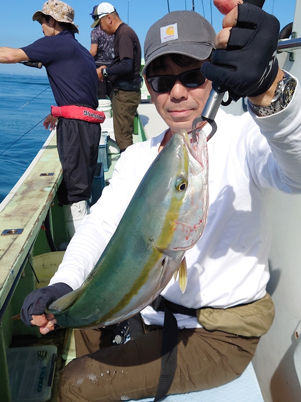 昼便 晴れ ジギング便 (淡路沖) ハマチ42~45cmを40匹。 (2~10匹) トップは八木さんで10匹でした。