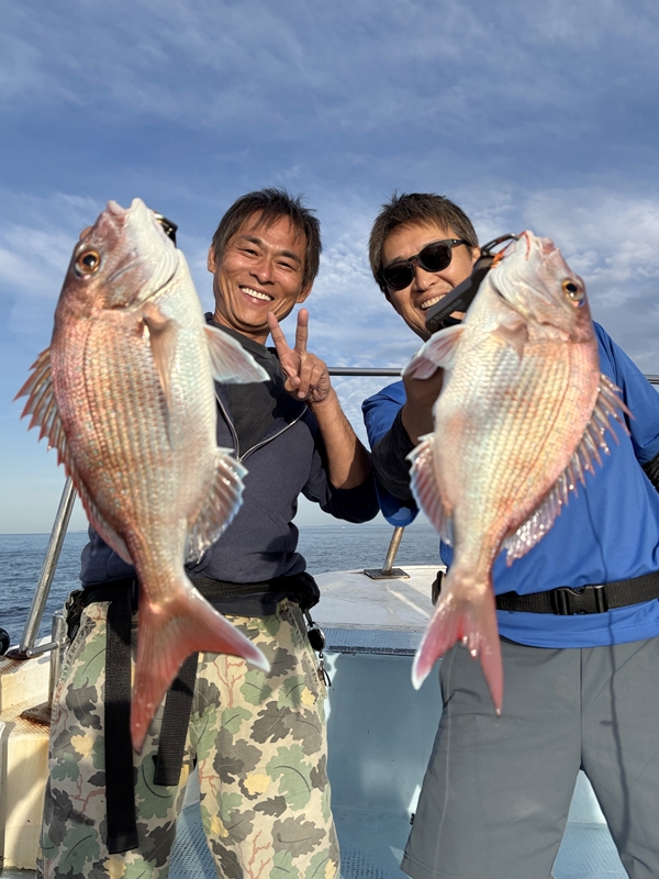 昼便 晴れ 鯛カブラ便 (淡路沖) マダイ25~45cmを32匹。 (3~6匹) ワニゴチ40~45cmを4匹。 (0~1匹) トップは植松さん、中島さんで6匹でした。
