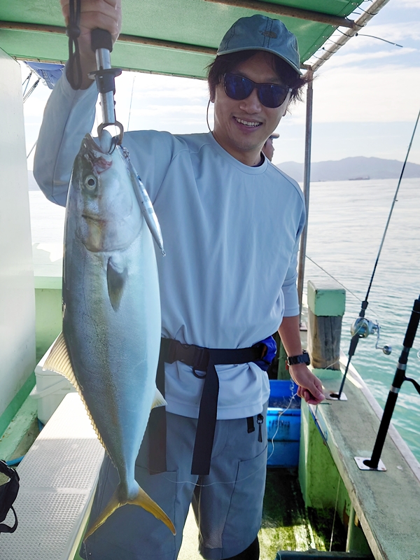 ジギング便 (淡路沖) メジロ65cmを1匹。 ハマチ48~50cmを2匹。 (0~2匹) サゴシ55cmを1匹。 マダイ55cmを1匹。