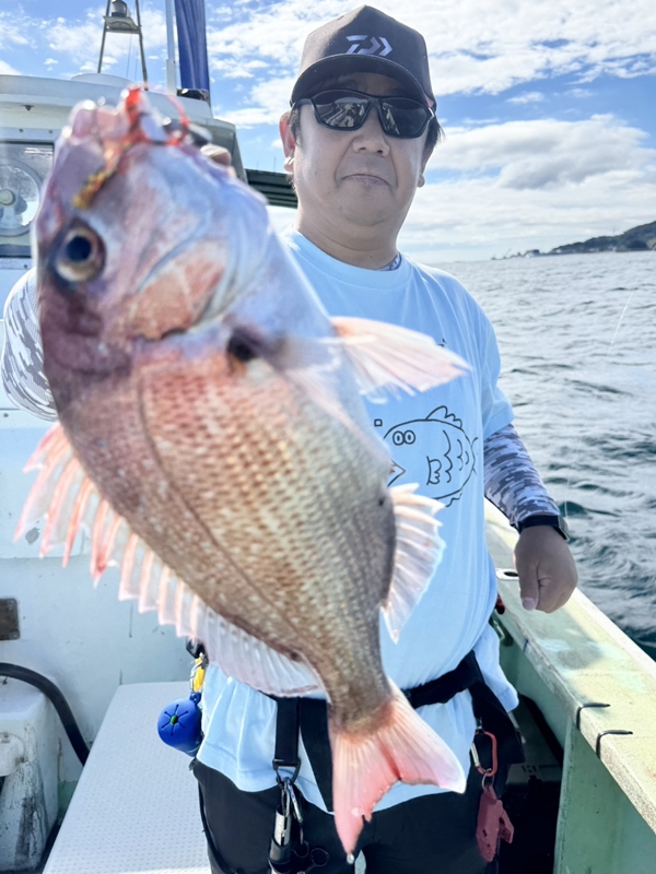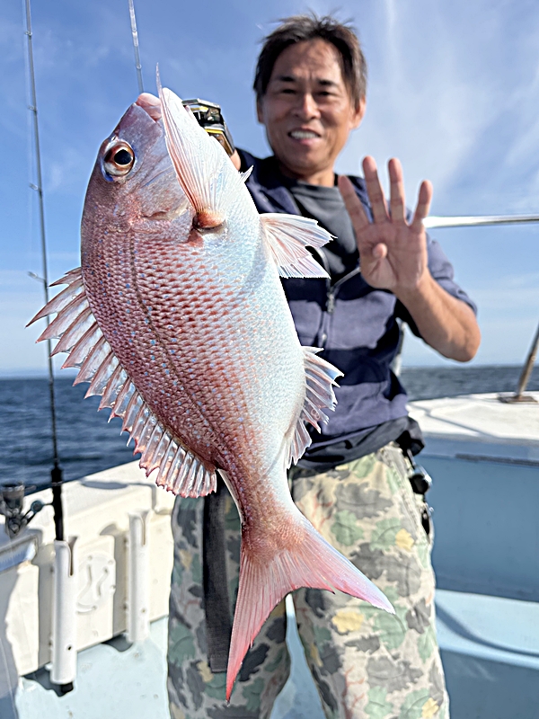 昼便 晴れ 鯛カブラ便 (淡路沖) マダイ30~61cmを28匹。 (1~4匹) タチウオ、グチ少々。 トップは小笠原さん他1名で4匹でした。