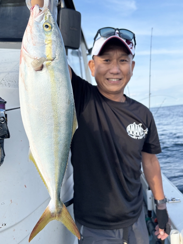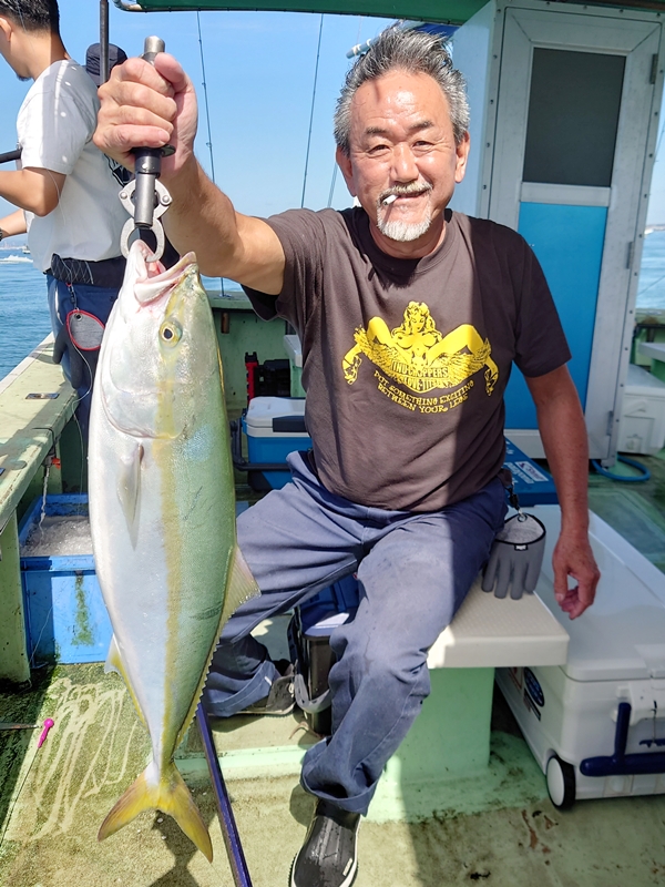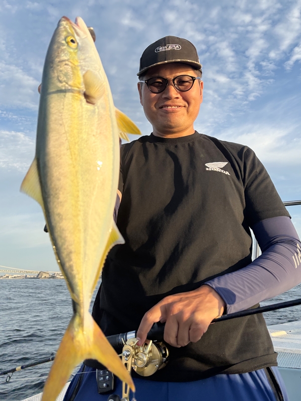 朝便 晴れ ジギング便 (淡路沖) メジロ63cmを1匹。 ハマチ42~45cmを57匹。 (3~13匹) トップは金澤さんグループの方で13匹でした。