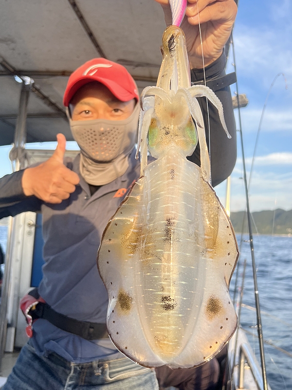朝便 晴れ アオリイカ便 (淡路沖) アオリイカ17~23cmを37杯。 (0~8杯) コウイカ12~14cmを3杯。 (0~1杯) トップは伊藤さんで8杯でした。