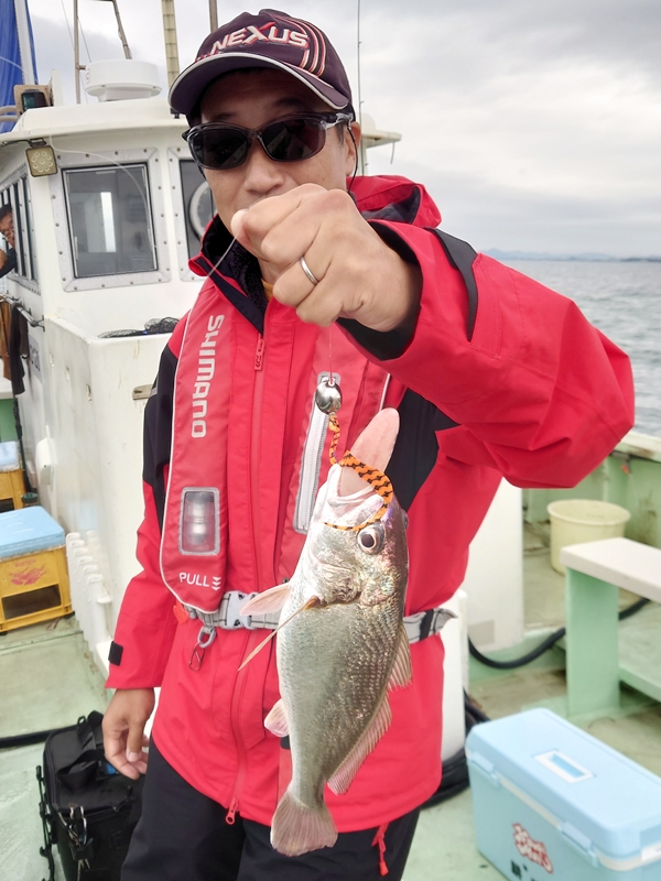 昼便 雨 鯛カブラ便 (淡路沖) マダイ30~45cmを17匹。 (0~3匹) ワニゴチ35~40cmを3匹。 (0~1匹) サゴシ50cmを1匹。 トップは一ノ瀬さん、寒川さんで3匹でした。 アオリイカ便 (淡路沖) アオリイカ20~23cmを14杯。 (0~5杯) コウイカ12~18cmを8杯。 (0~1杯) トップは薮井さんで5杯でした。 カワハギ便 (淡路沖) カワハギ14~22cmを25匹。 (0~4匹) トップは内藤さんで4匹でした。 |