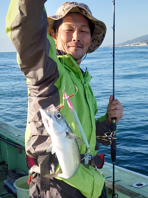 ジギング便 (淡路、神戸沖) メジロ62cmを1匹。 ハマチ40~45cmを11匹。 (0~3匹) サゴシ40~45cmを2匹。 (0~1匹) タチウオ60~90cmを10匹。 (1~2匹) トップは浅田さんでメジロ1匹、ハマチ2匹でした。