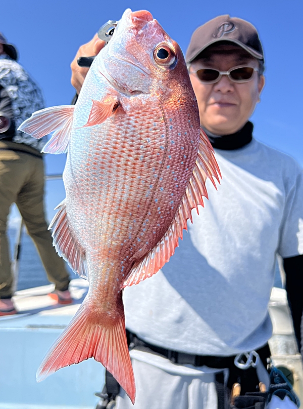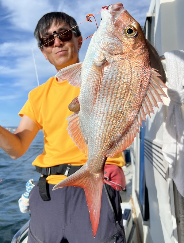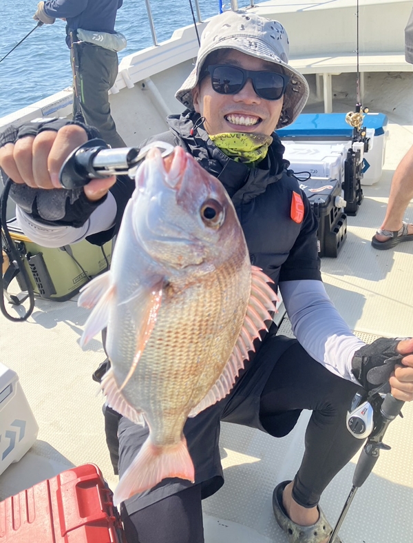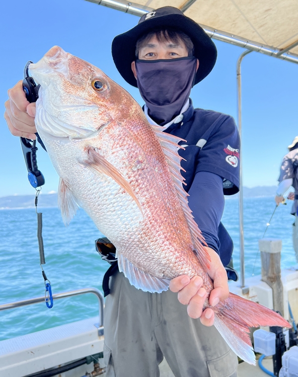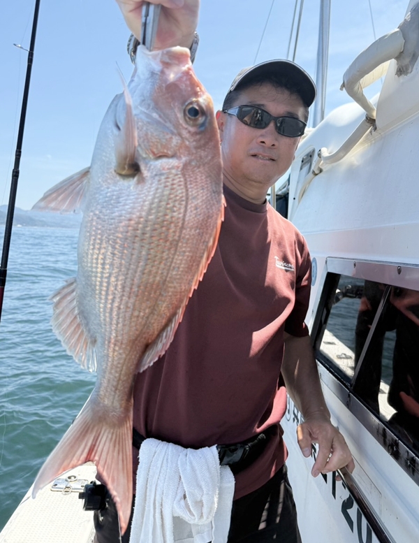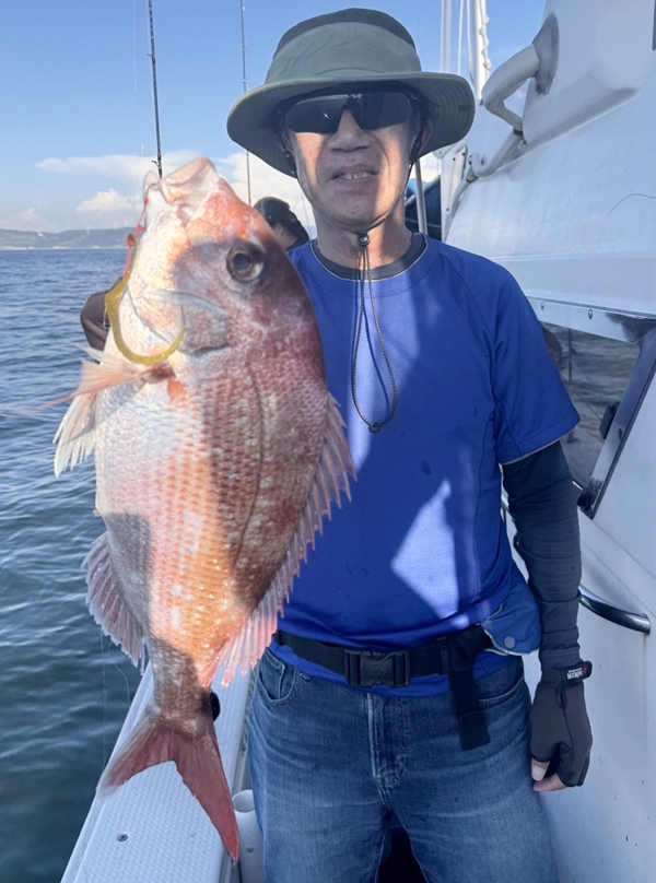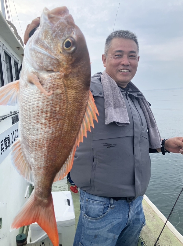 昼便 晴れ 鯛カブラ便 (淡路沖) マダイ31~42cmを6匹。 (0~2匹) コブダイ60cmを1匹。 トップは大原さん、寒川さんでマダイ2匹でした。