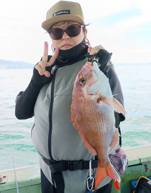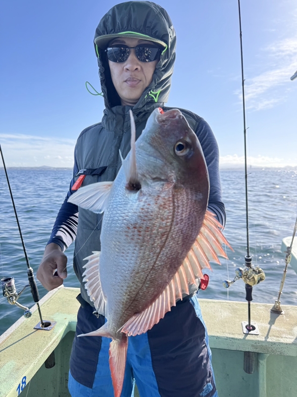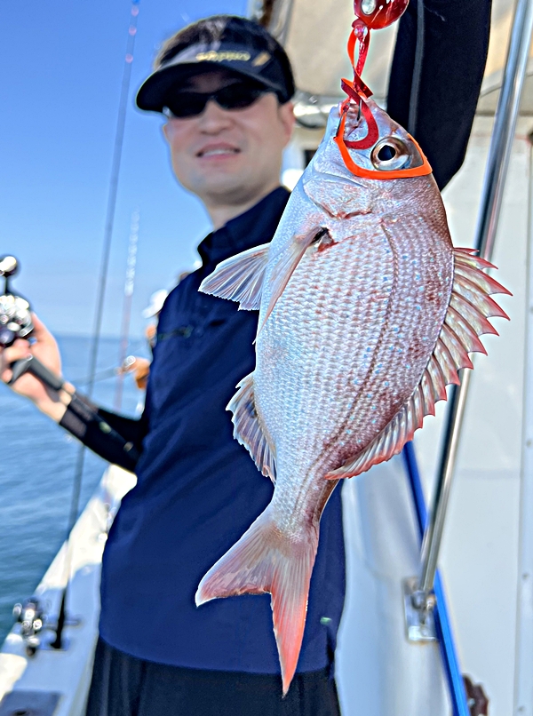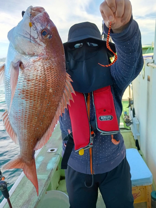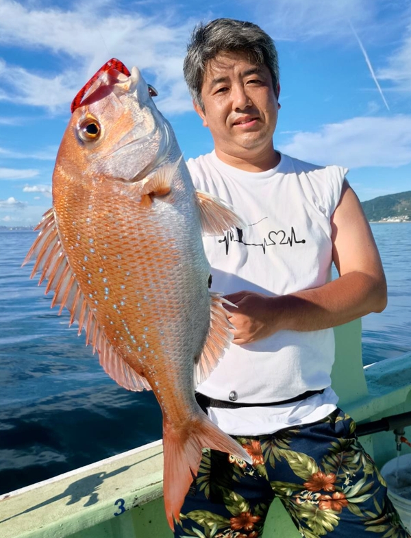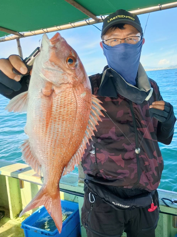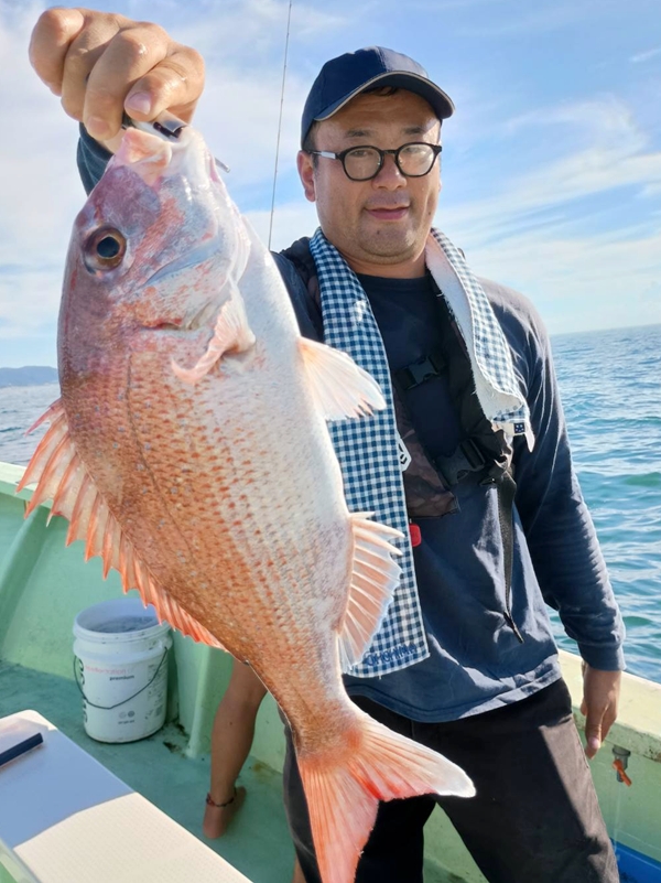 昼便 晴れ 鯛カブラ便 (淡路沖) マダイ31~42cmを6匹。 (0~2匹) コブダイ60cmを1匹。 トップは大原さん、寒川さんでマダイ2匹でした。