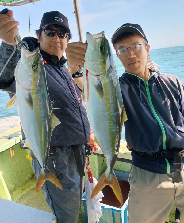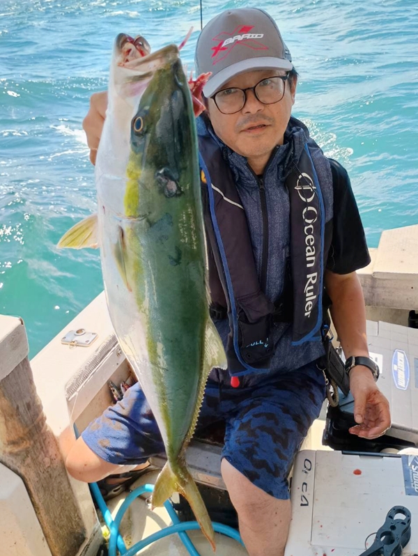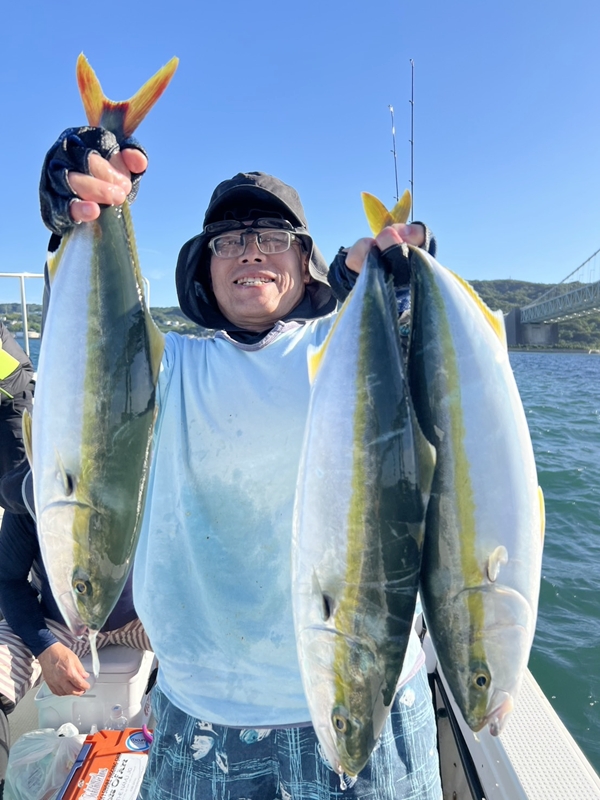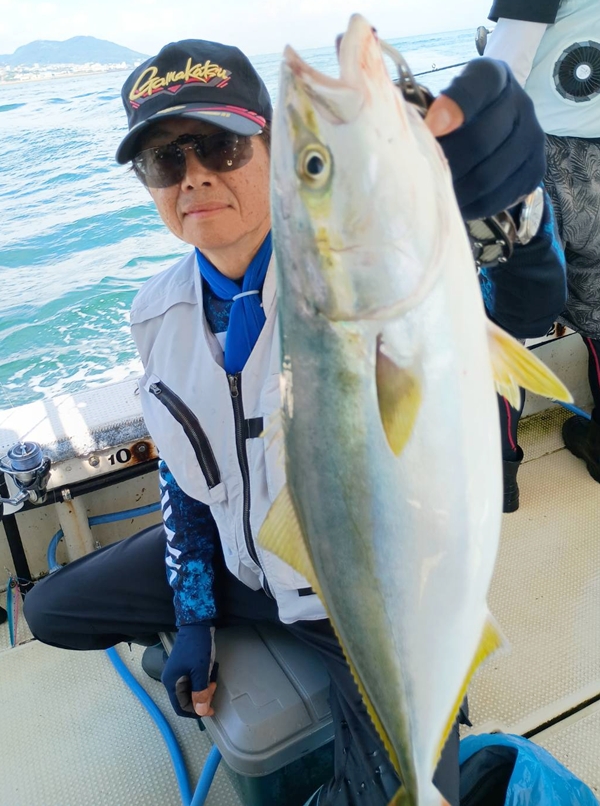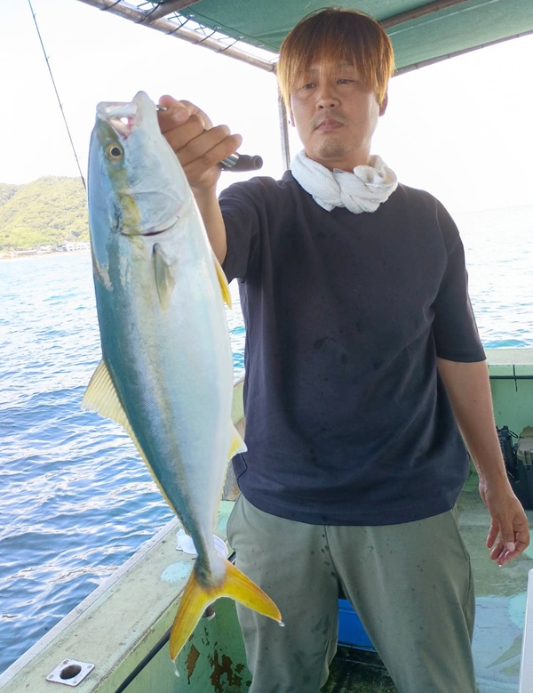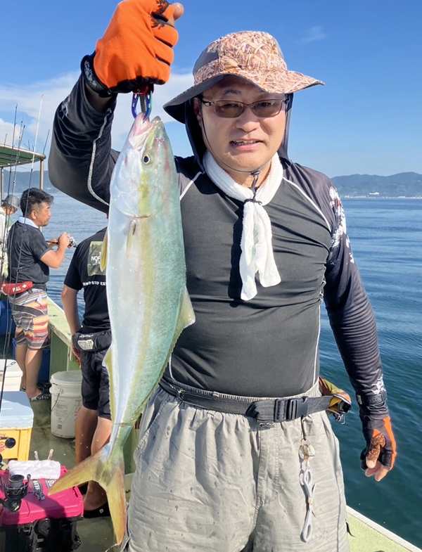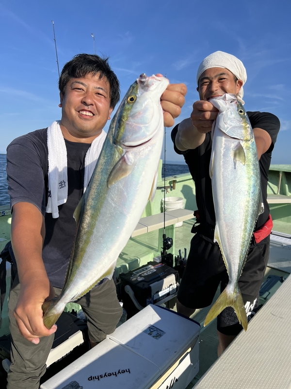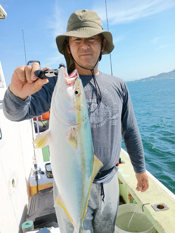 朝便 晴れ ジギング便 (淡路、神戸沖) メジロ61~62cmを2匹。 (0~1匹) ハマチ(大)55~57cmを7匹。 (0~1匹) ツバス・ハマチ33~40cmを4匹。 (0~1匹) シオ35cmを1匹。 タチウオ60~90cmを30匹。 (0~6匹)