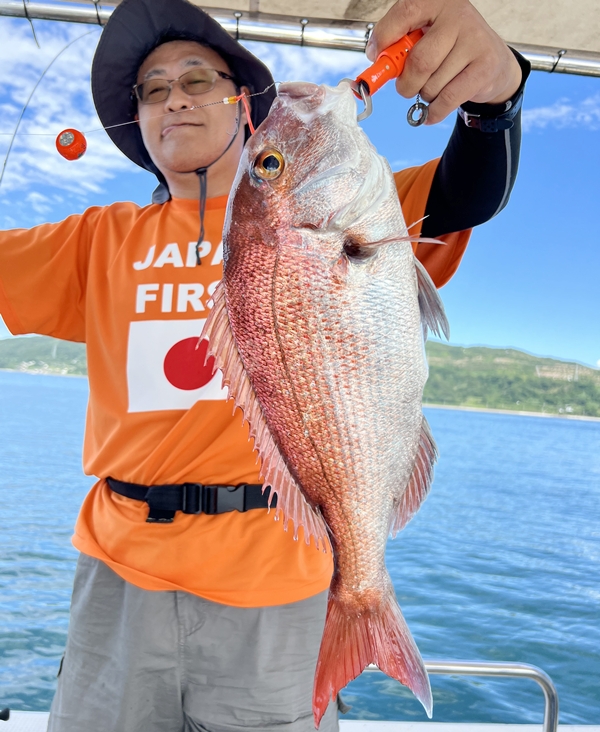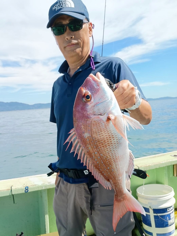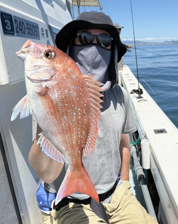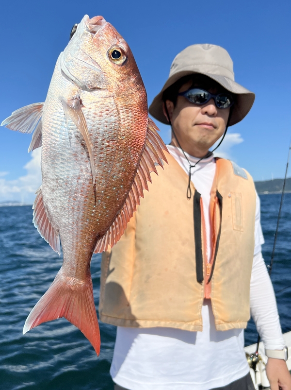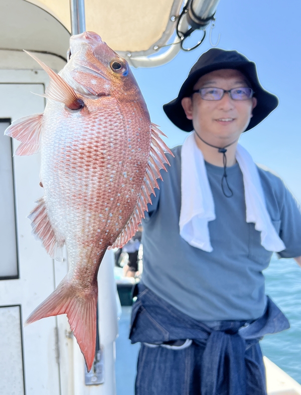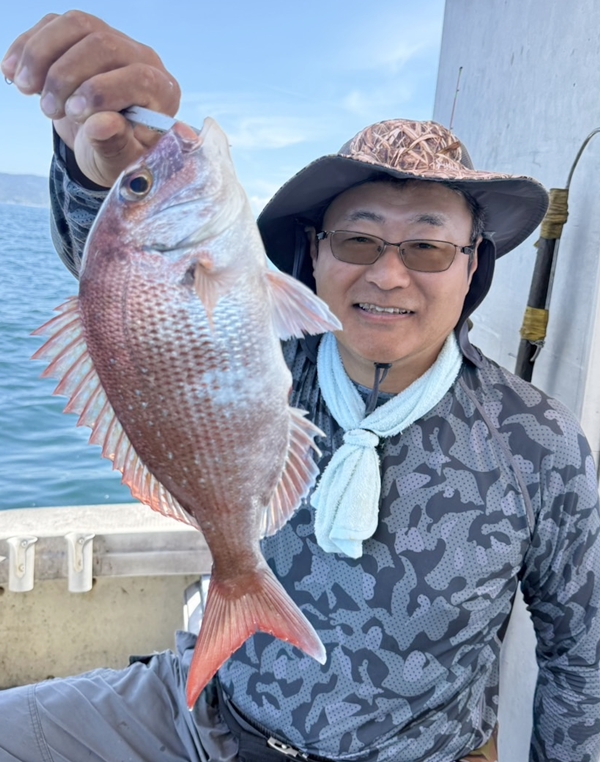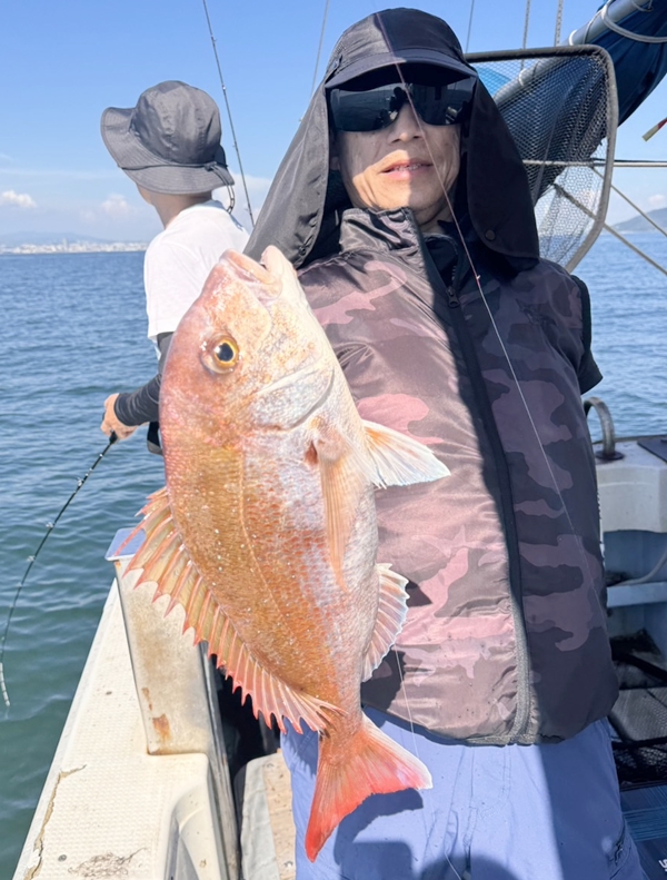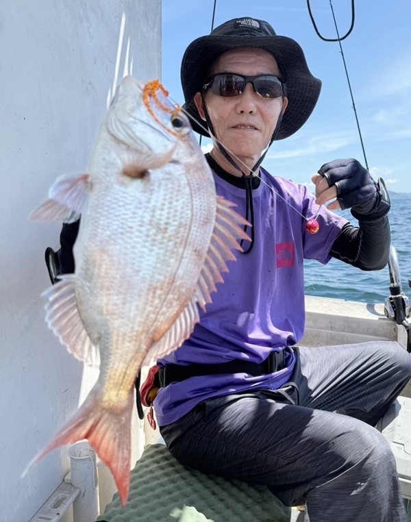 昼便 晴れ 鯛カブラ便 (淡路沖) マダイ23~31cmを7匹。 (0~2匹) マアジ37~42cmを2匹。 (0~1匹) トップは横野さんでマダイ2匹でした。