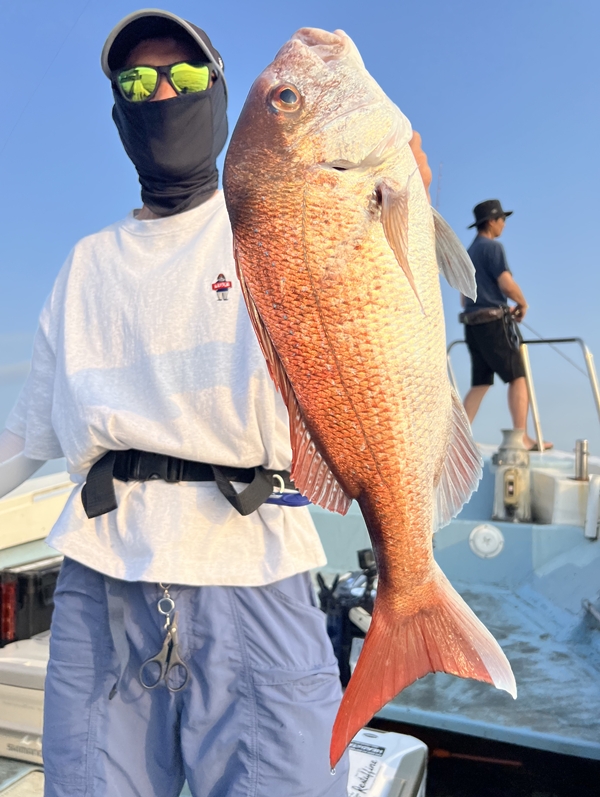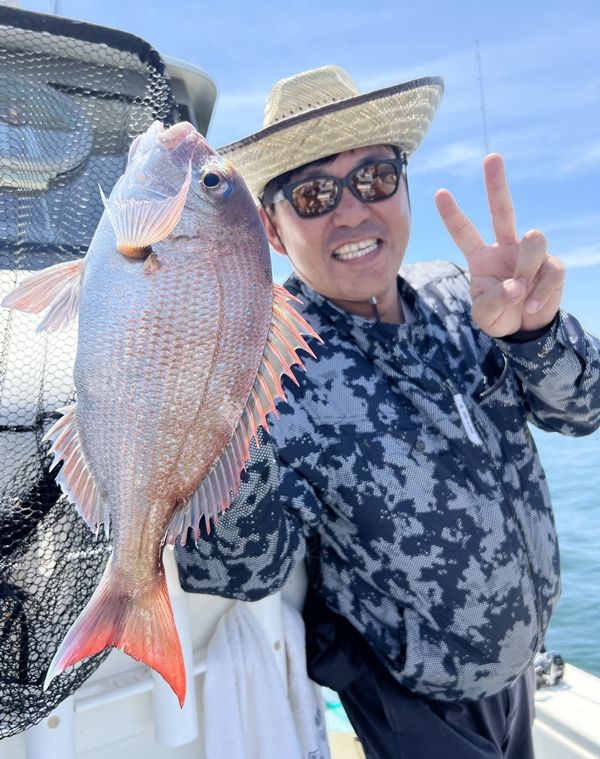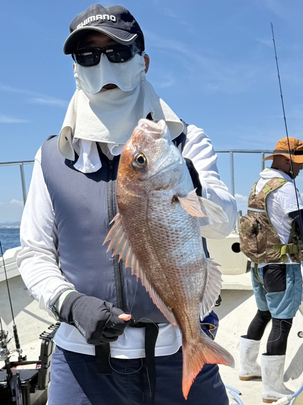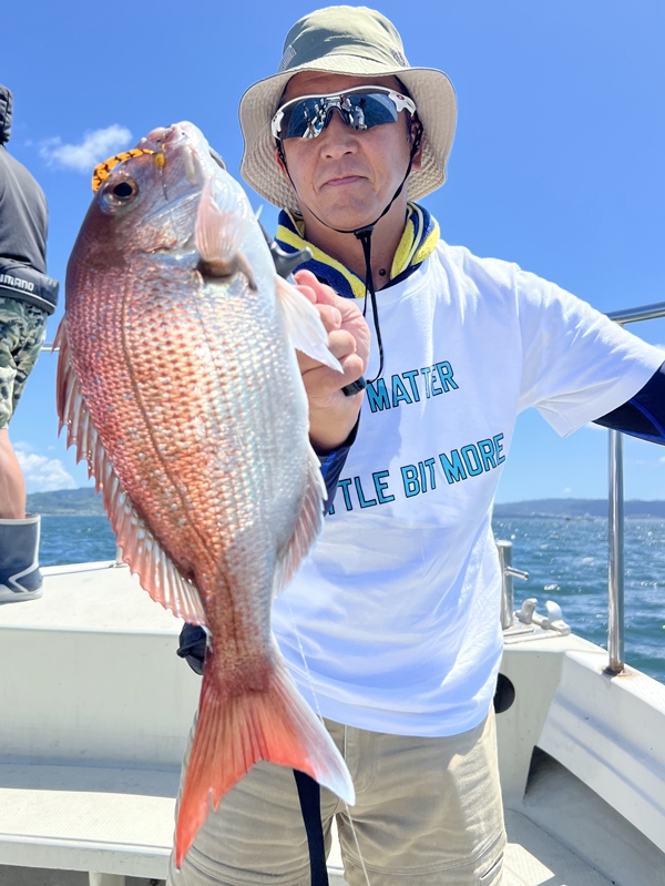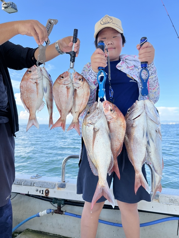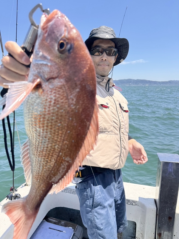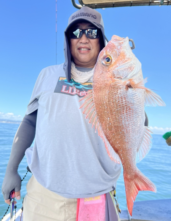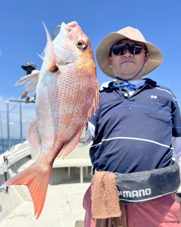 昼便 晴れ 鯛カブラ便 (淡路沖) マダイ23~31cmを7匹。 (0~2匹) マアジ37~42cmを2匹。 (0~1匹) トップは横野さんでマダイ2匹でした。
