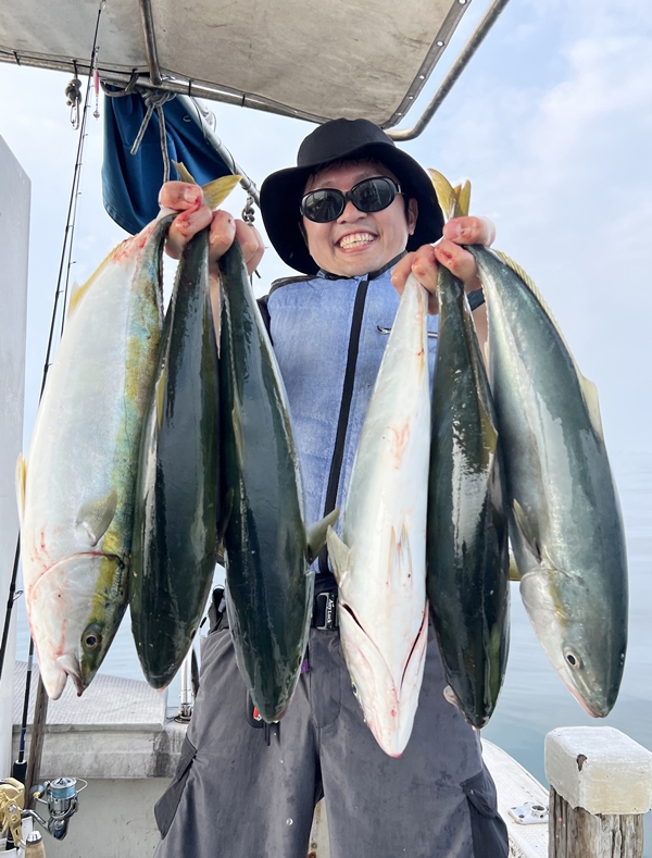 昼便 晴れ ジギング便 (淡路沖) ハマチ45~55cmを20匹。 (0~3匹) トップは岸田さんでハマチ3匹でした。