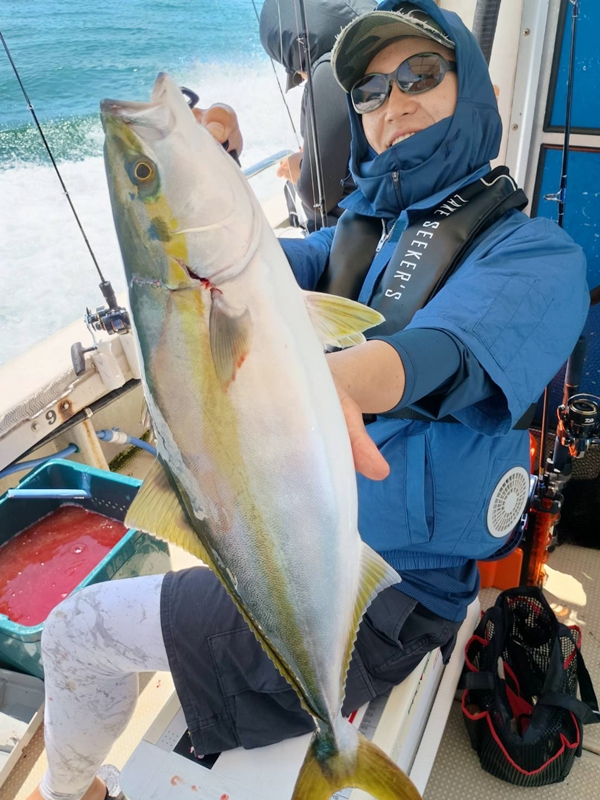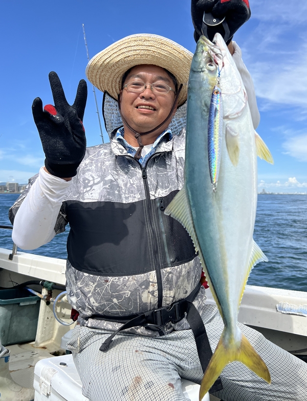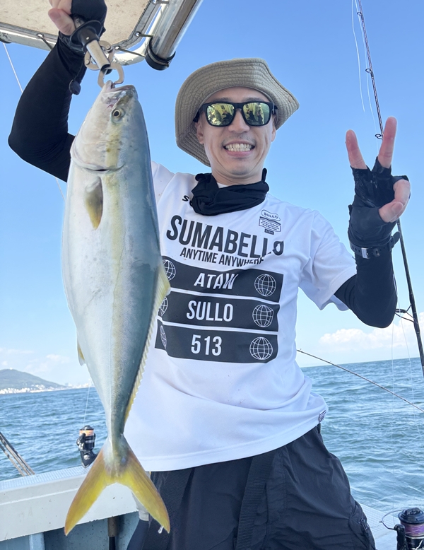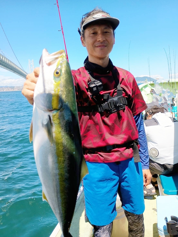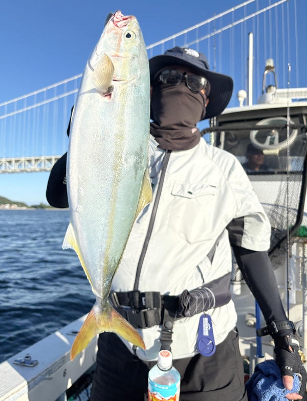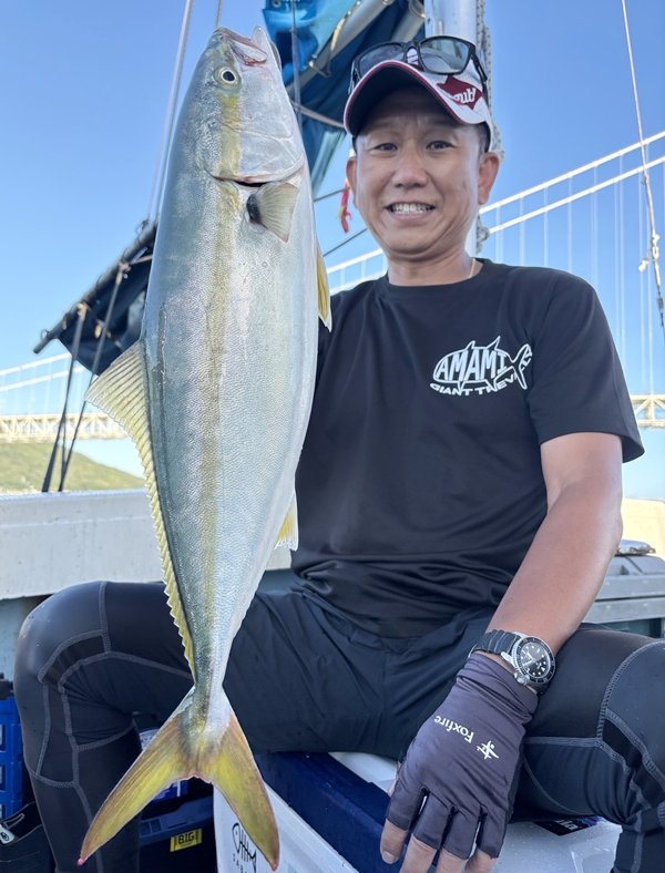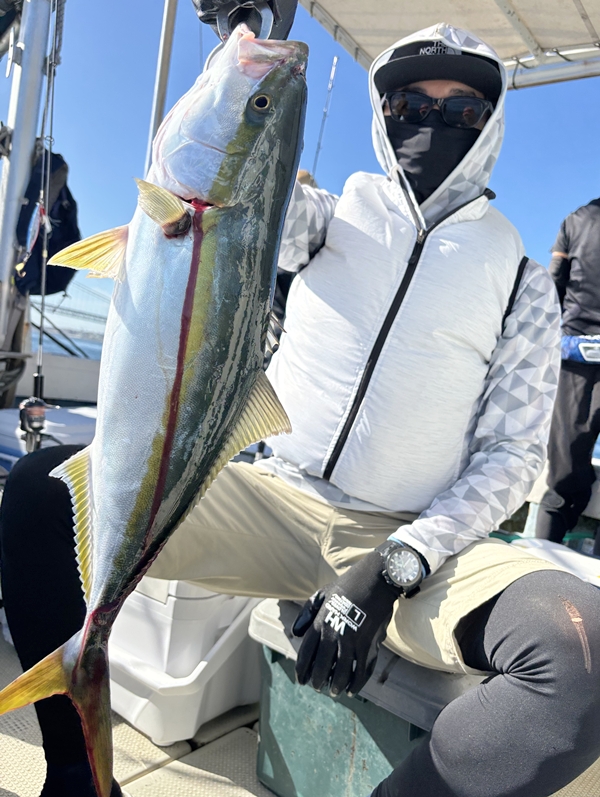 朝便 晴れ ジギング便 (淡路沖) メジロ70cmを1匹。 ハマチ42~48cmを14匹。 (0~4匹) トップは安原さんでハマチ4匹でした。