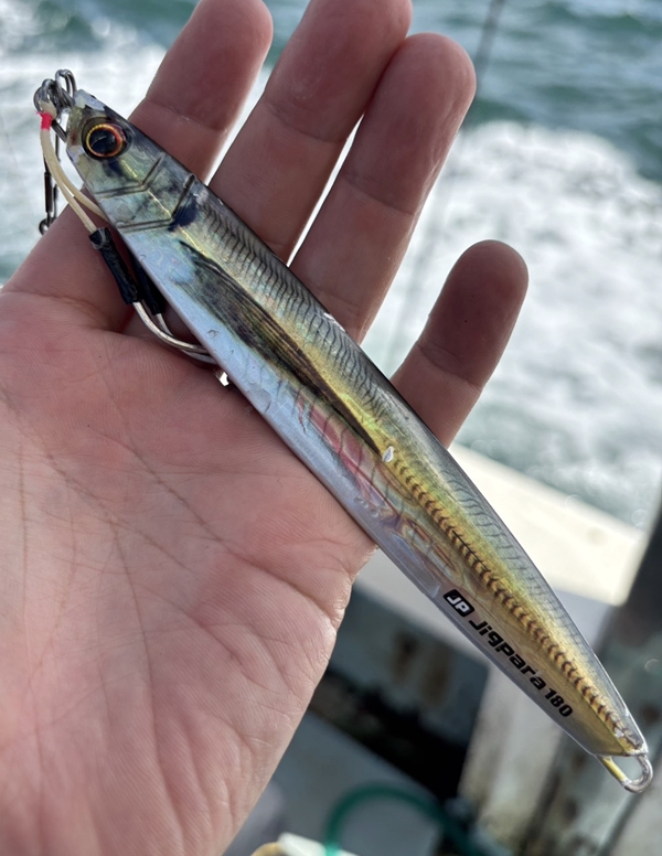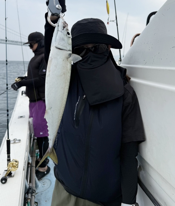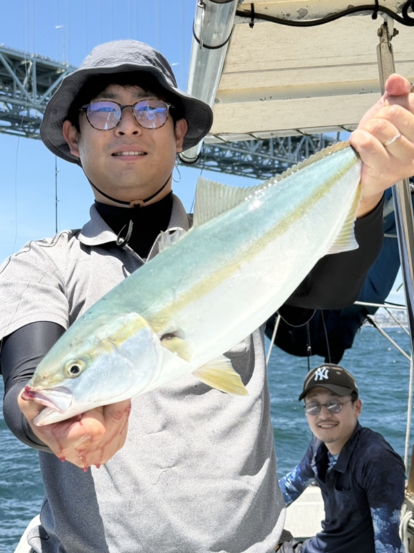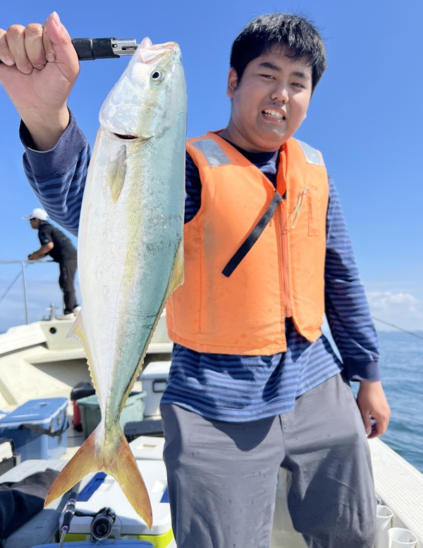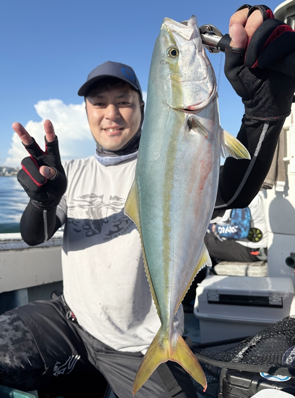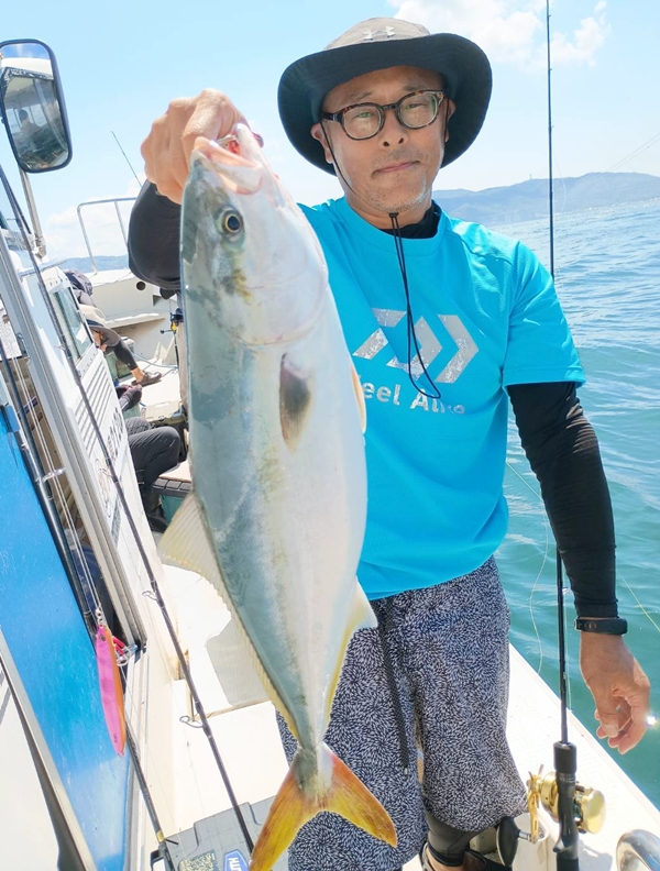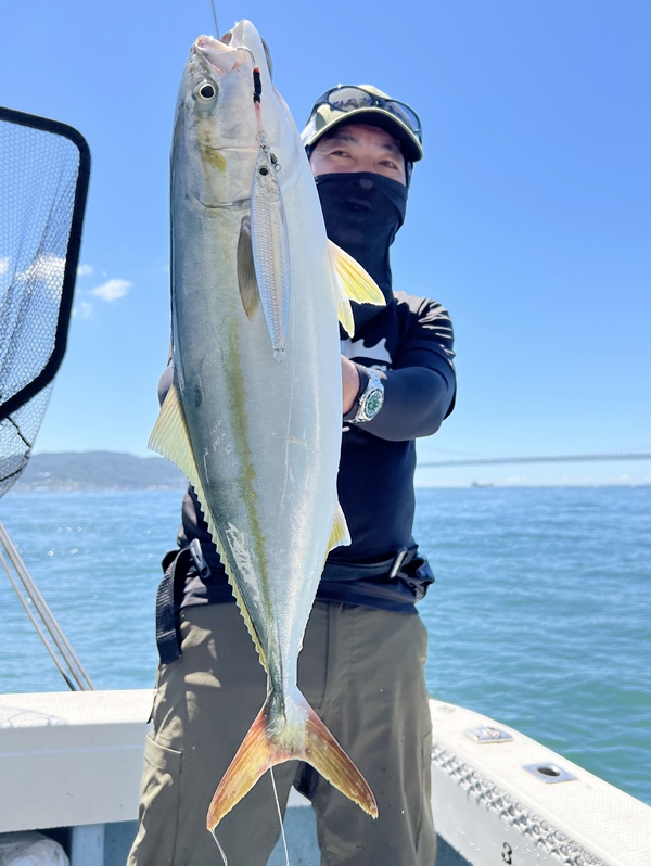 ジギング便 (船中2名、淡路沖) ハマチ45cmを1匹。