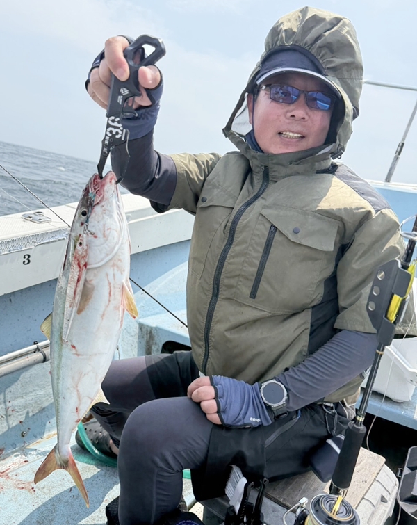 ジギング便 (淡路沖) ツバス・ハマチ35~40cmを36匹。 (0~8匹) シオ35~40cmを2匹。 (0~1匹) トップは赤谷さん、松岡さんでツバス・ハマチ8匹でした。
