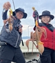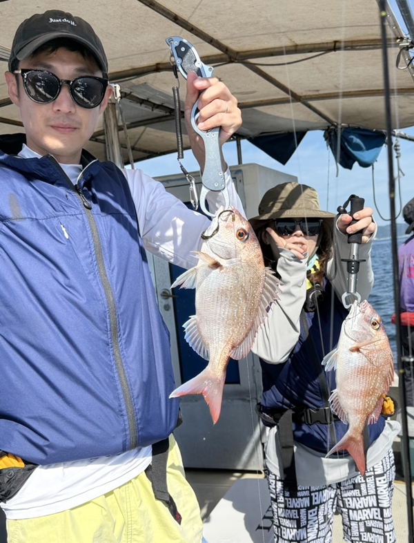 昼便 晴れ 鯛カブラ便 (船中4名、淡路沖) マダイ25~50cmを11匹。 (0~4匹) コブダイ37~45cmを2匹。 (0~1匹) トップは野村さん、今村さんでマダイ4匹でした。