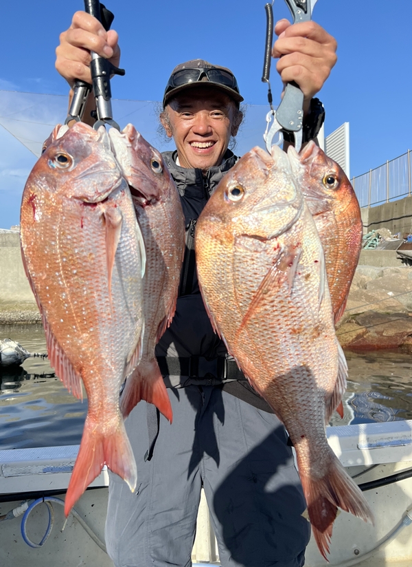 朝便 晴れ 鯛カブラ便 (淡路沖) マダイ25~50cmを18匹。 (2~5匹) トップは平山さんで5匹でした。 |