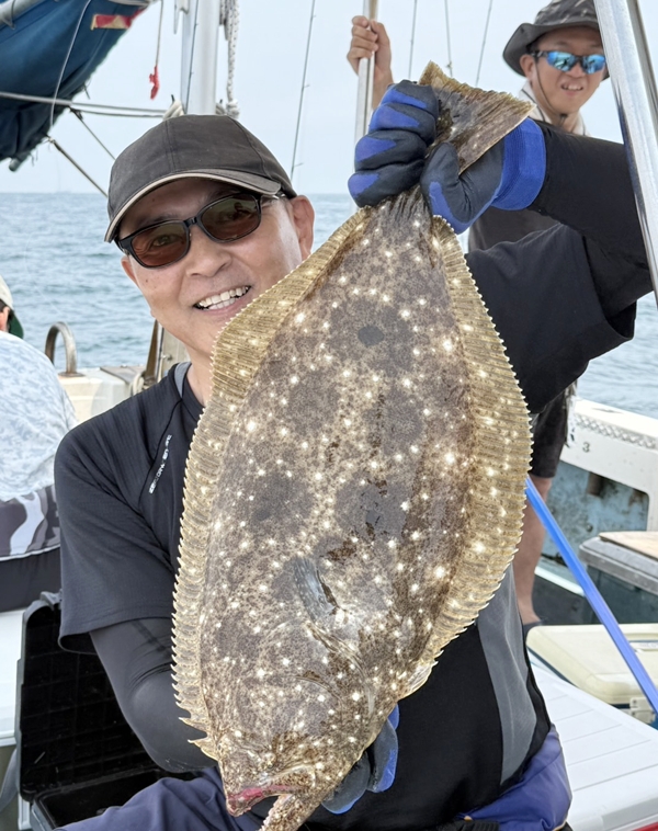 昼便 晴れ 鯛カブラ便 (淡路沖) マダイ25~57cmを18匹。 (0~3匹) マゴチ50~60cmを2匹。 (0~1匹) ワニゴチ25~40cmを5匹。 (0~1匹) ガシラ少々。 トップは松浦さん、由本さんで3匹でした。