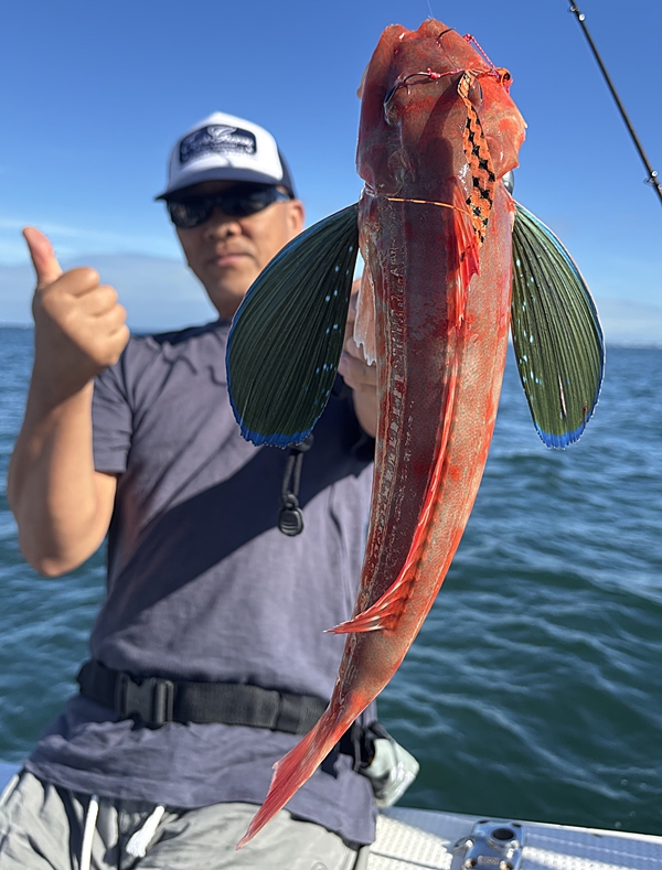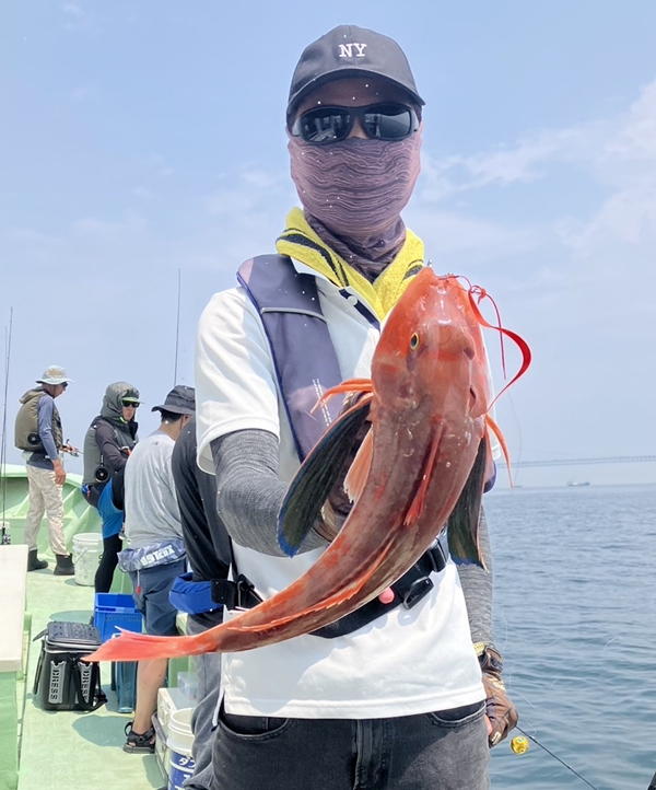 鯛カブラ便 (淡路沖) マダイ30~38cmを5匹。 (0~3匹) ホウボウ33~37cmを2匹。 (0~1匹) トップは山本さんグループの方でマダイ3匹でした。